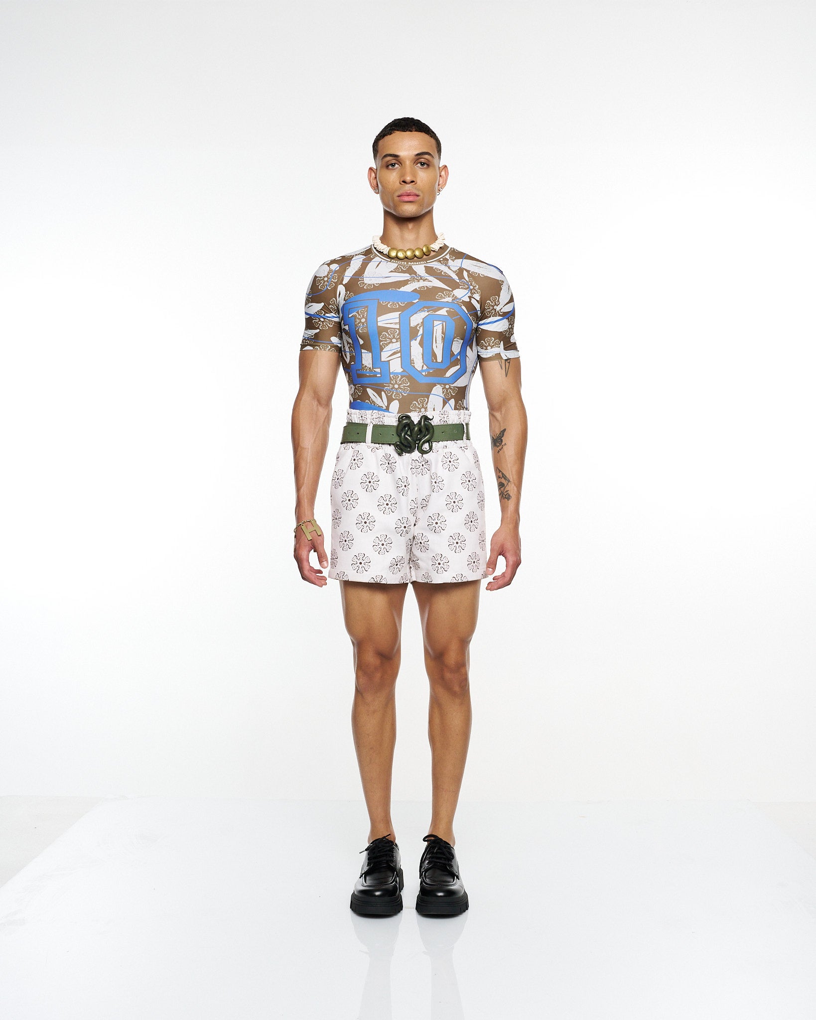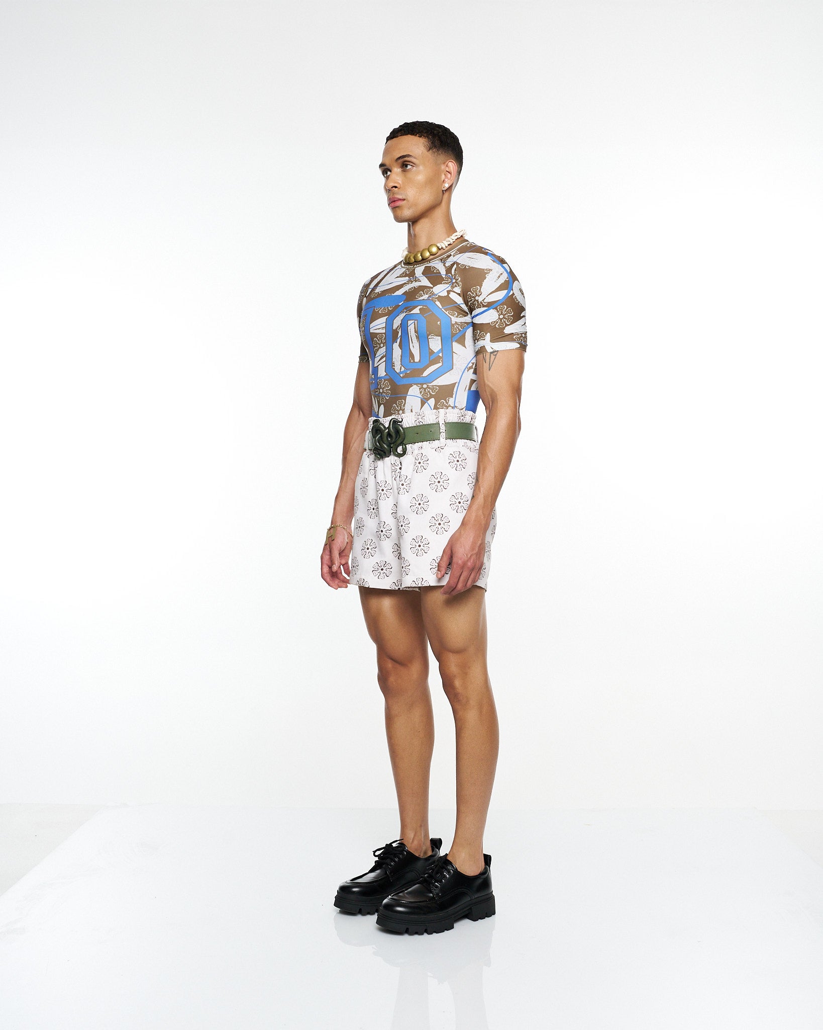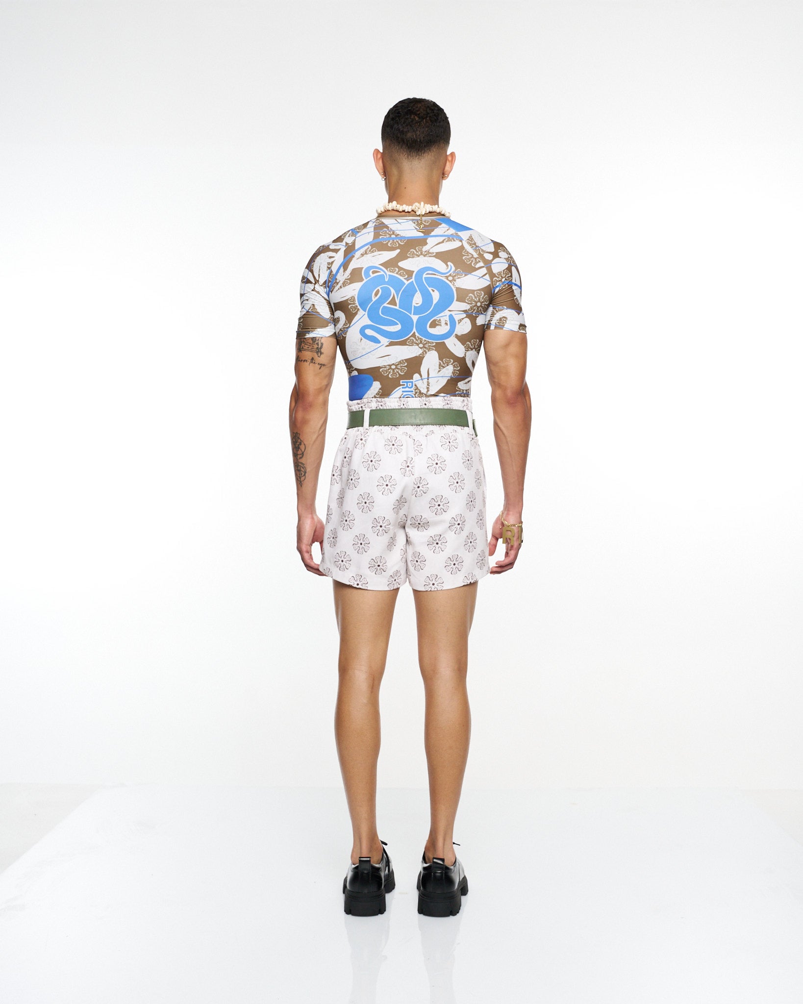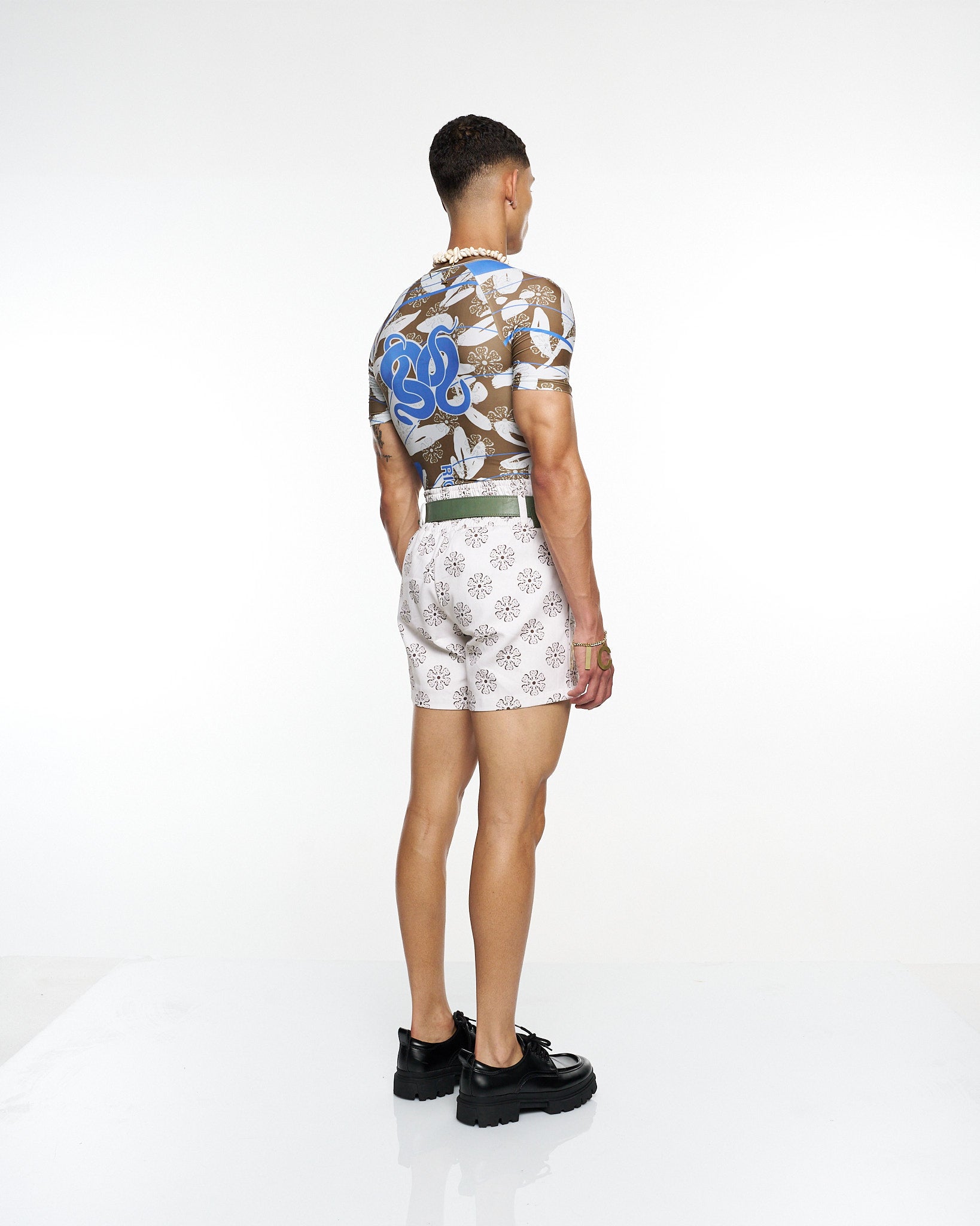 **/Description/*} The RICH MNISI Eden Boxing Shorts are cut from crisp denim, adorned with a delicate floral print. Featuring a structured high-waist fit and sharp tailoring, they offer a refined balance of elegance and ease.