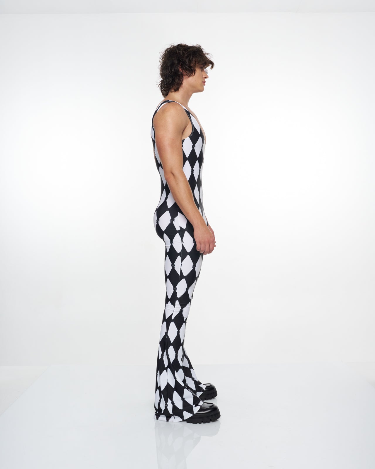 **/Description/*} The RICH MNISI Art Argyle Bell-Bottom Singlet is made to a sleeveless silhouette cut to a flared fit with a low back, patterned with The RICH MNISI Art Argyle print.