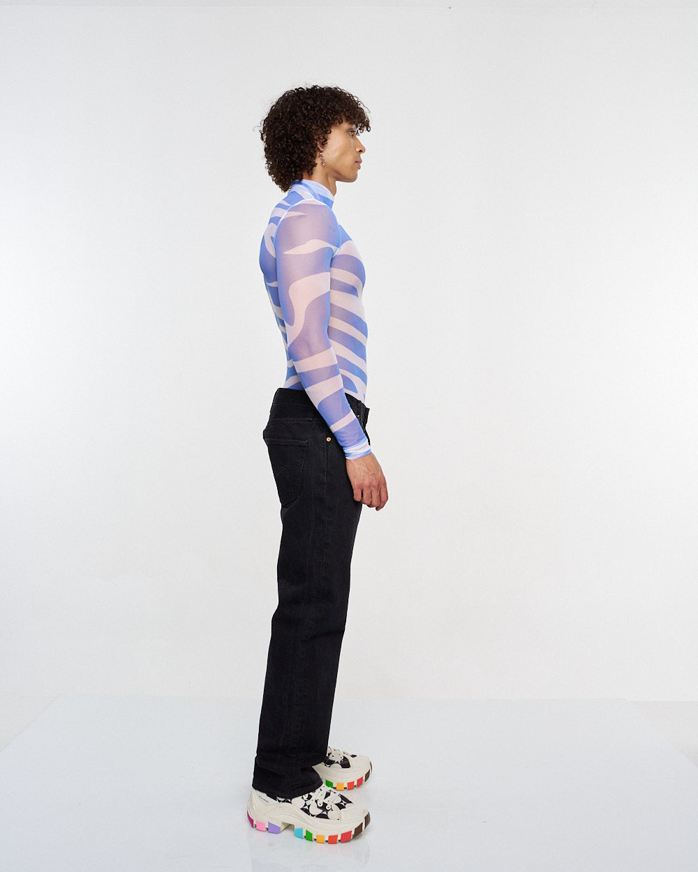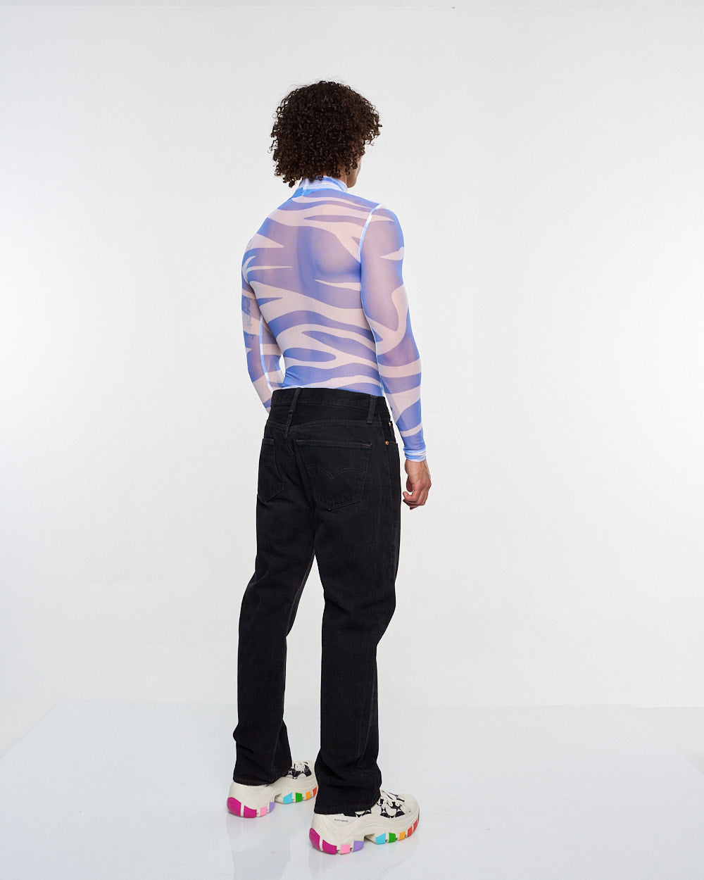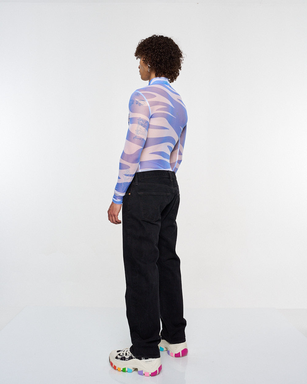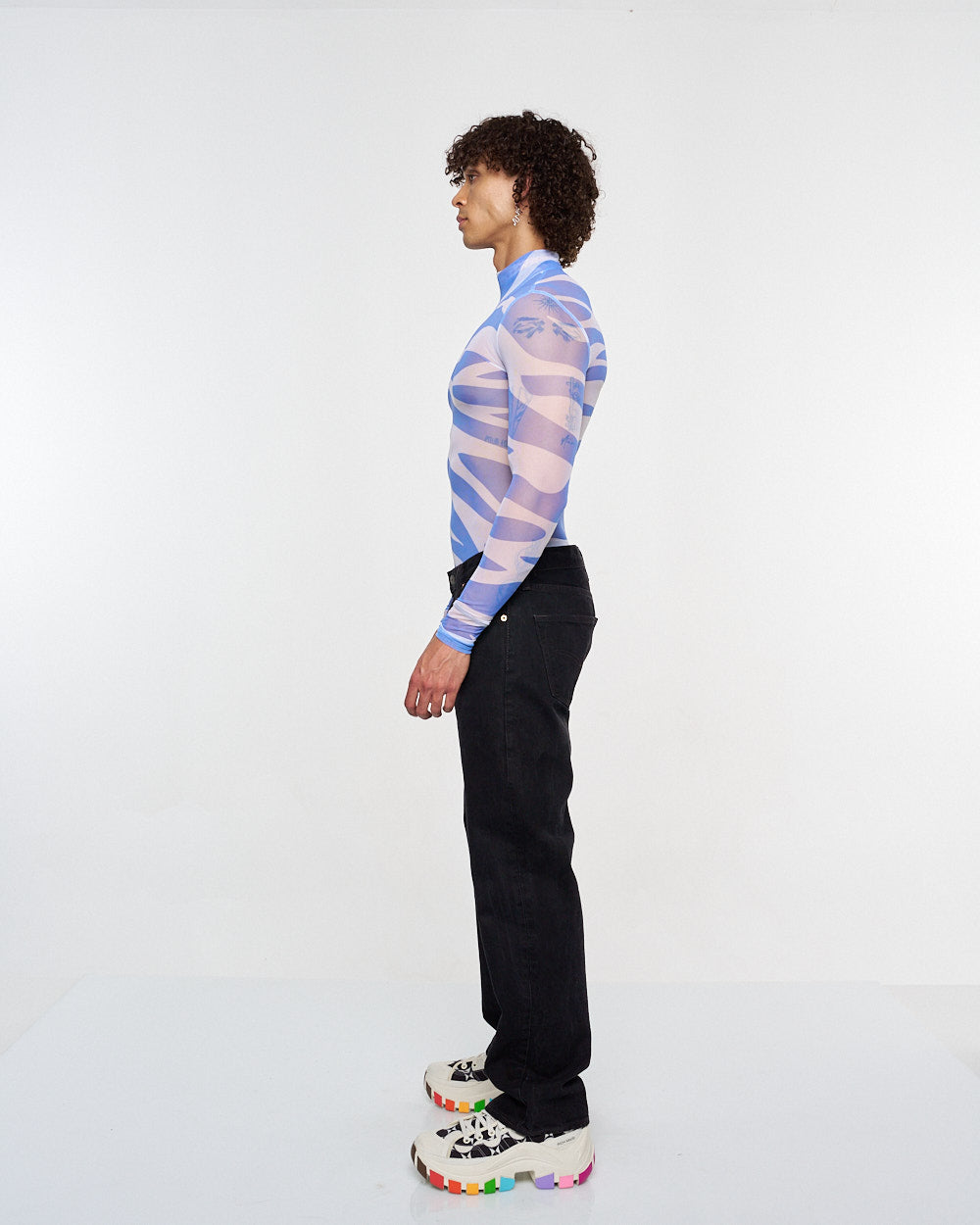 **/Description/*} The RICH MNISI Blue Zebra Tube is a stretch sheer turtleneck patterned in the Blue Zebra print.