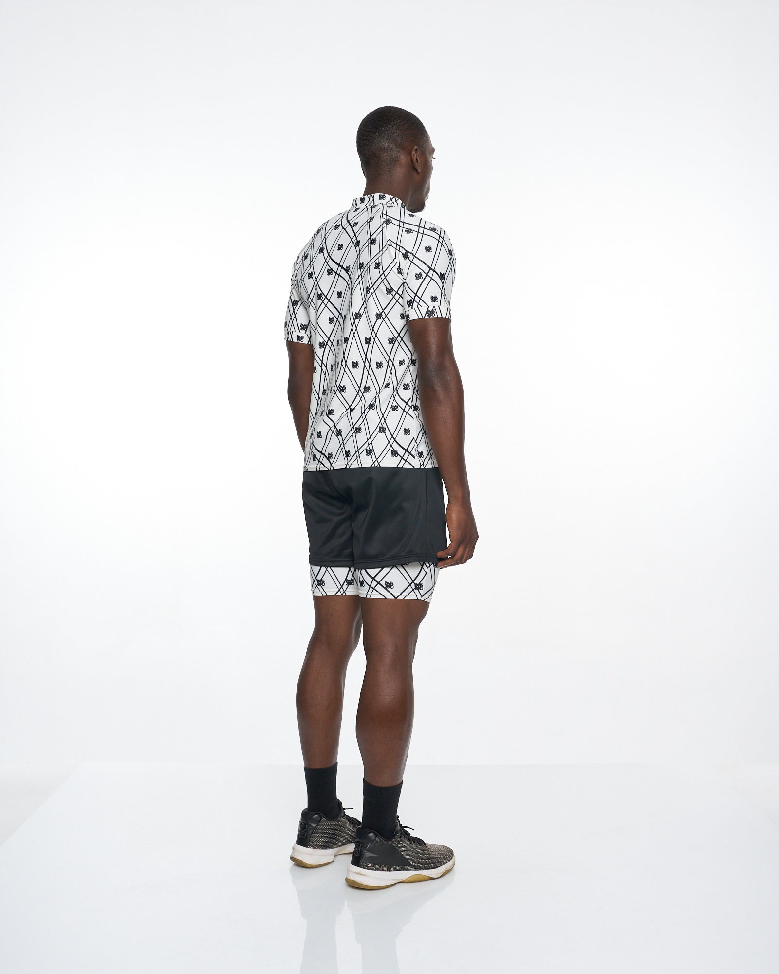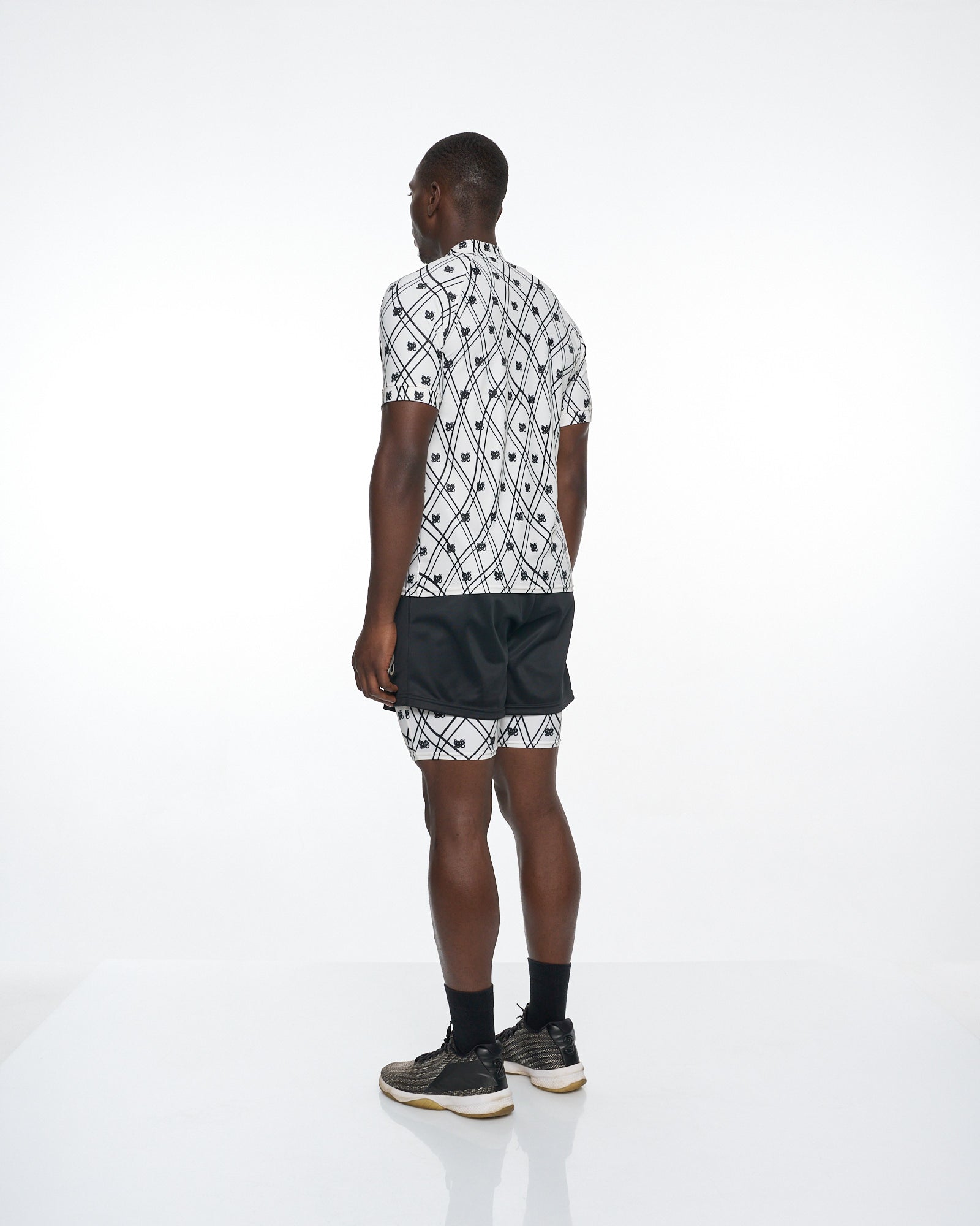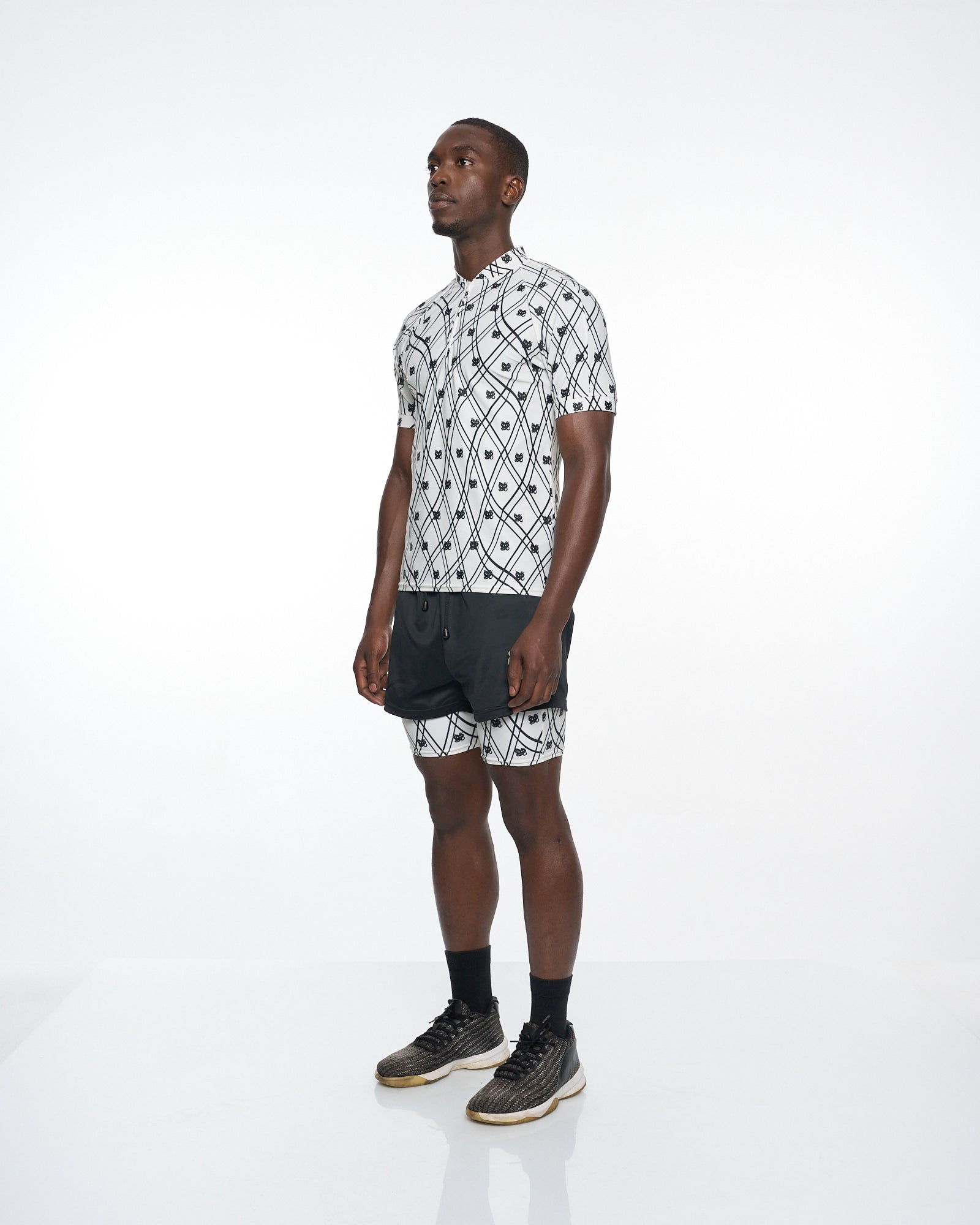**/Description/*} The RICH MNISI Classic Argyle Short Sleeve Top is a stretch collared shirt featuring our geometric argyle pattern crafted in a short sleeved slim fit. The shirt has a classic collar and front zip chest closure.