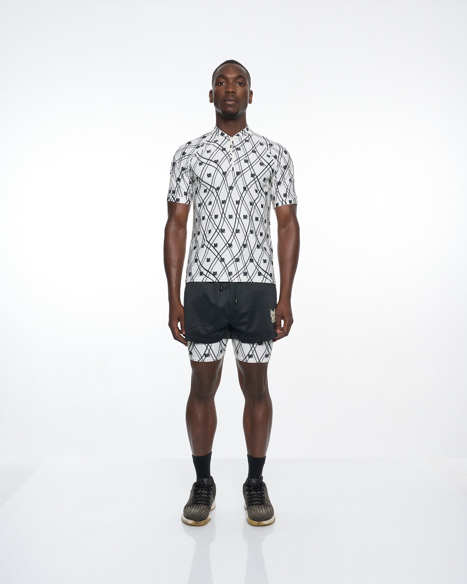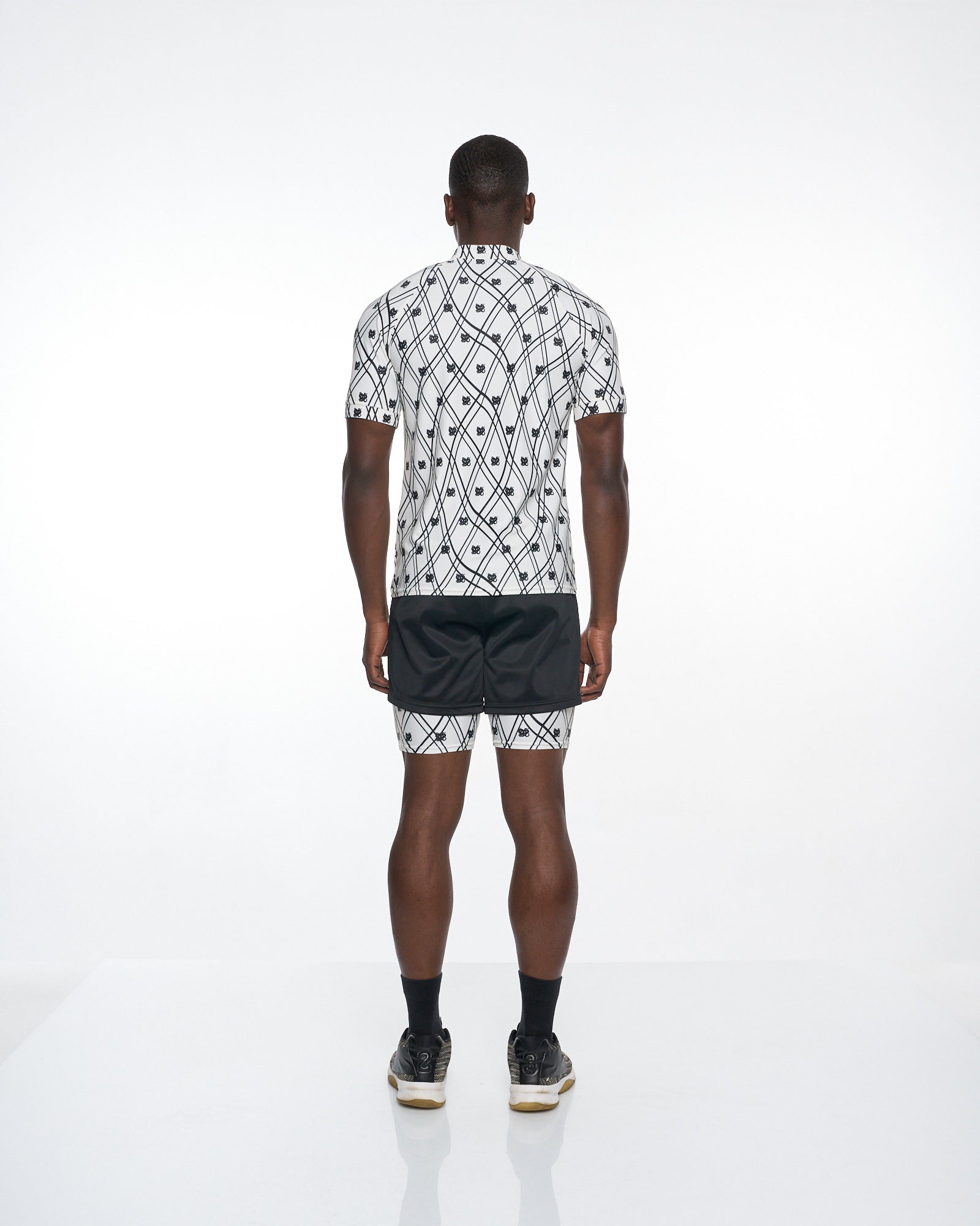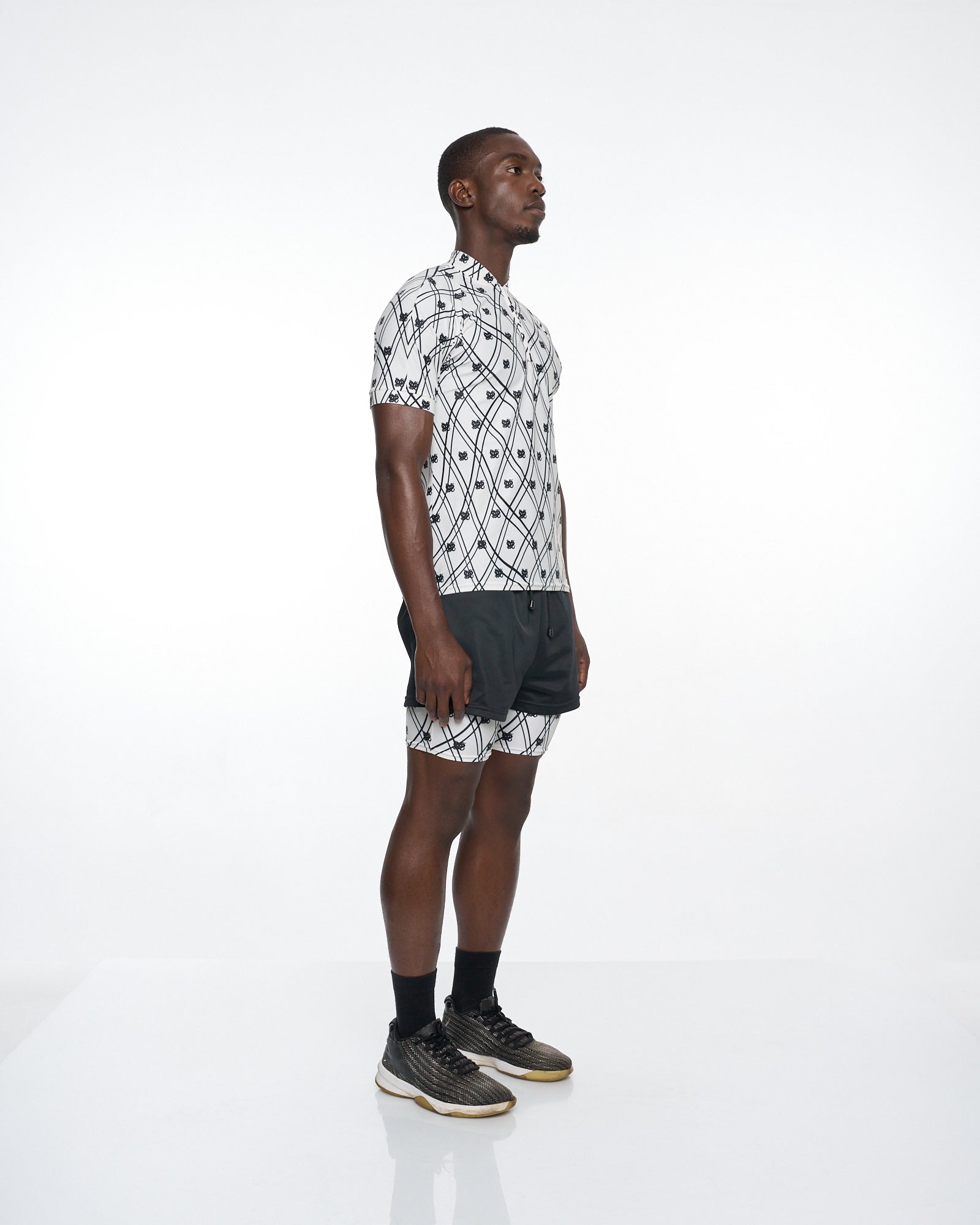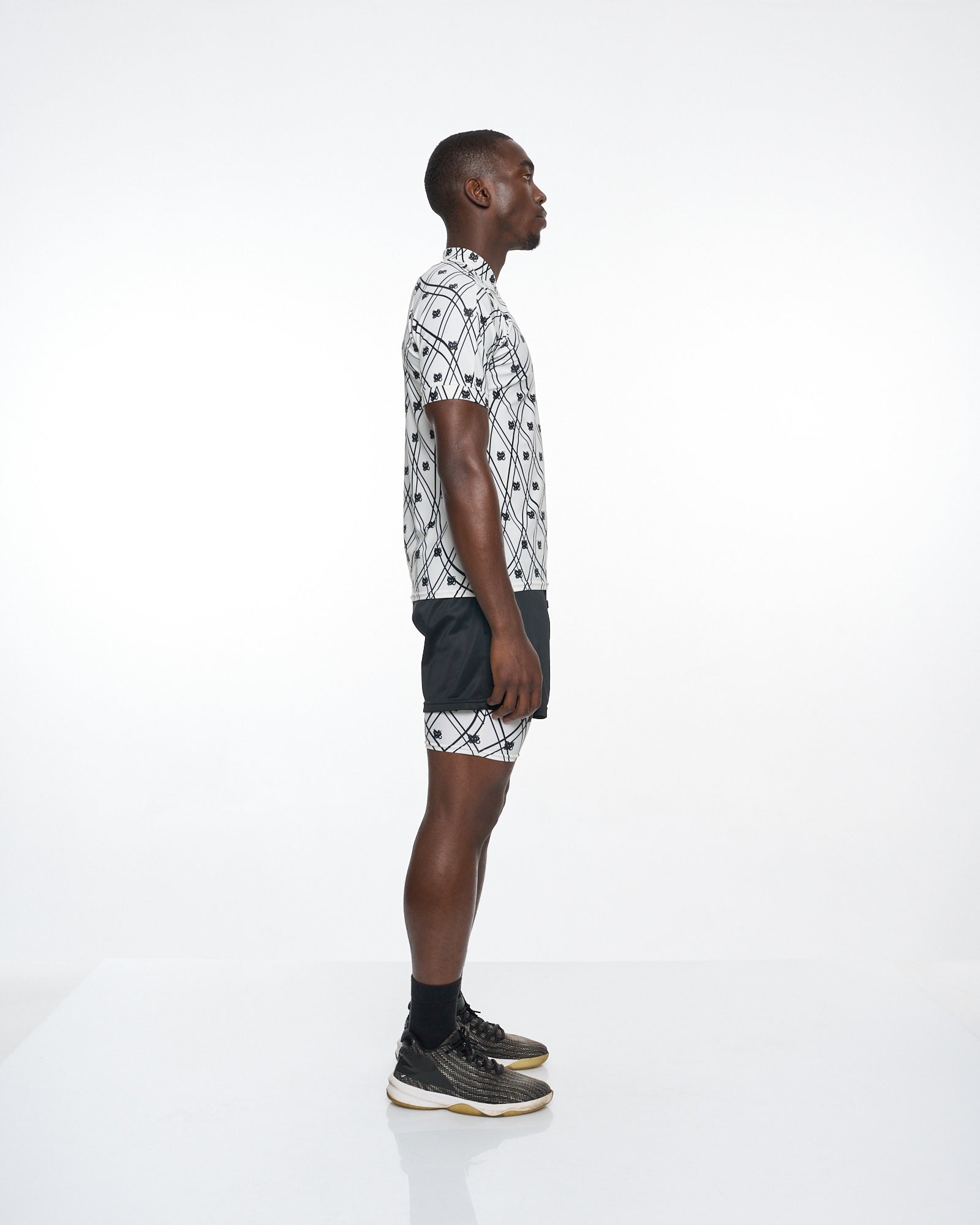 **/Description/*} The RICH MNISI Classic Argyle Short Sleeve Top is a stretch collared shirt featuring our geometric argyle pattern crafted in a short sleeved slim fit. The shirt has a classic collar and front zip chest closure.