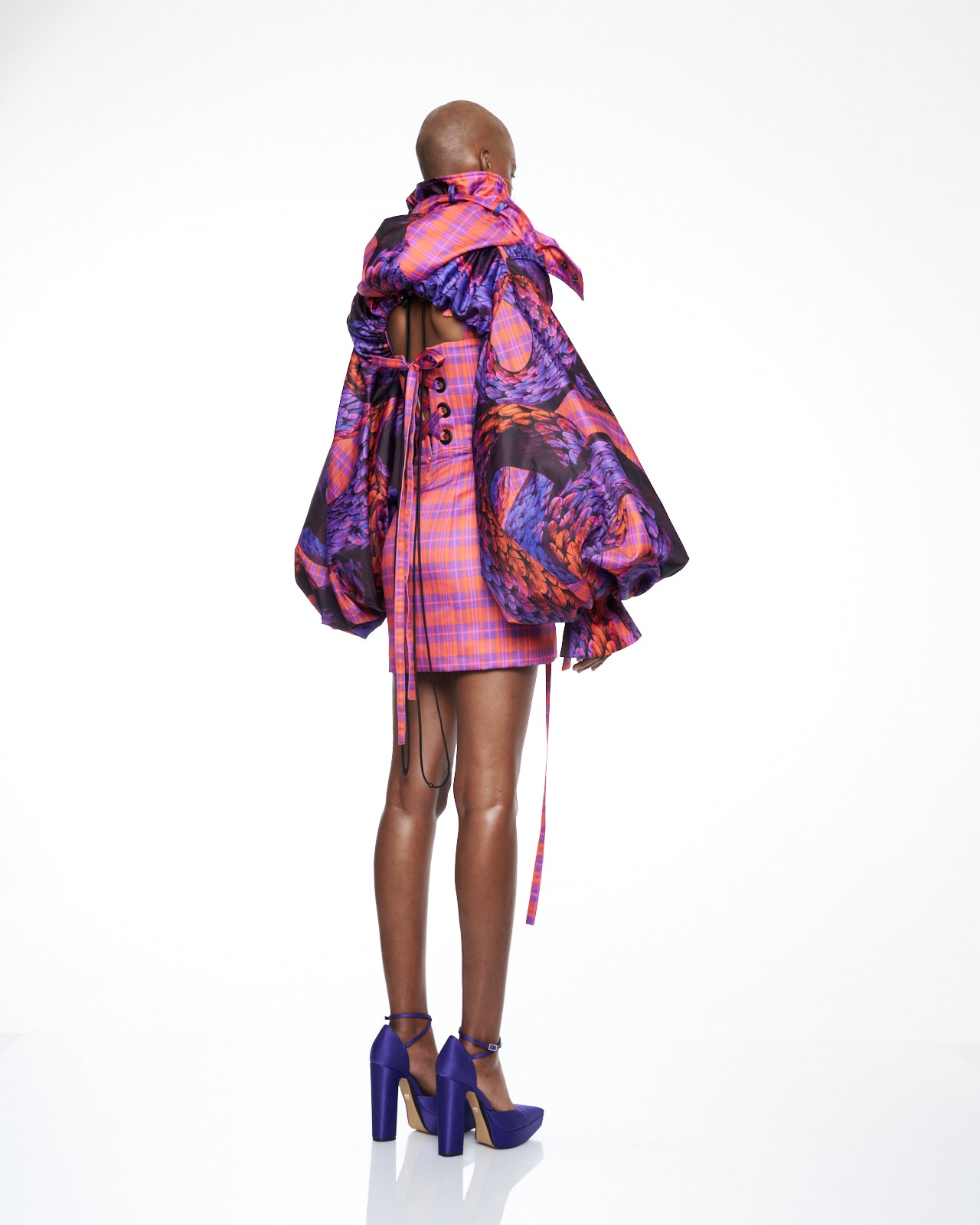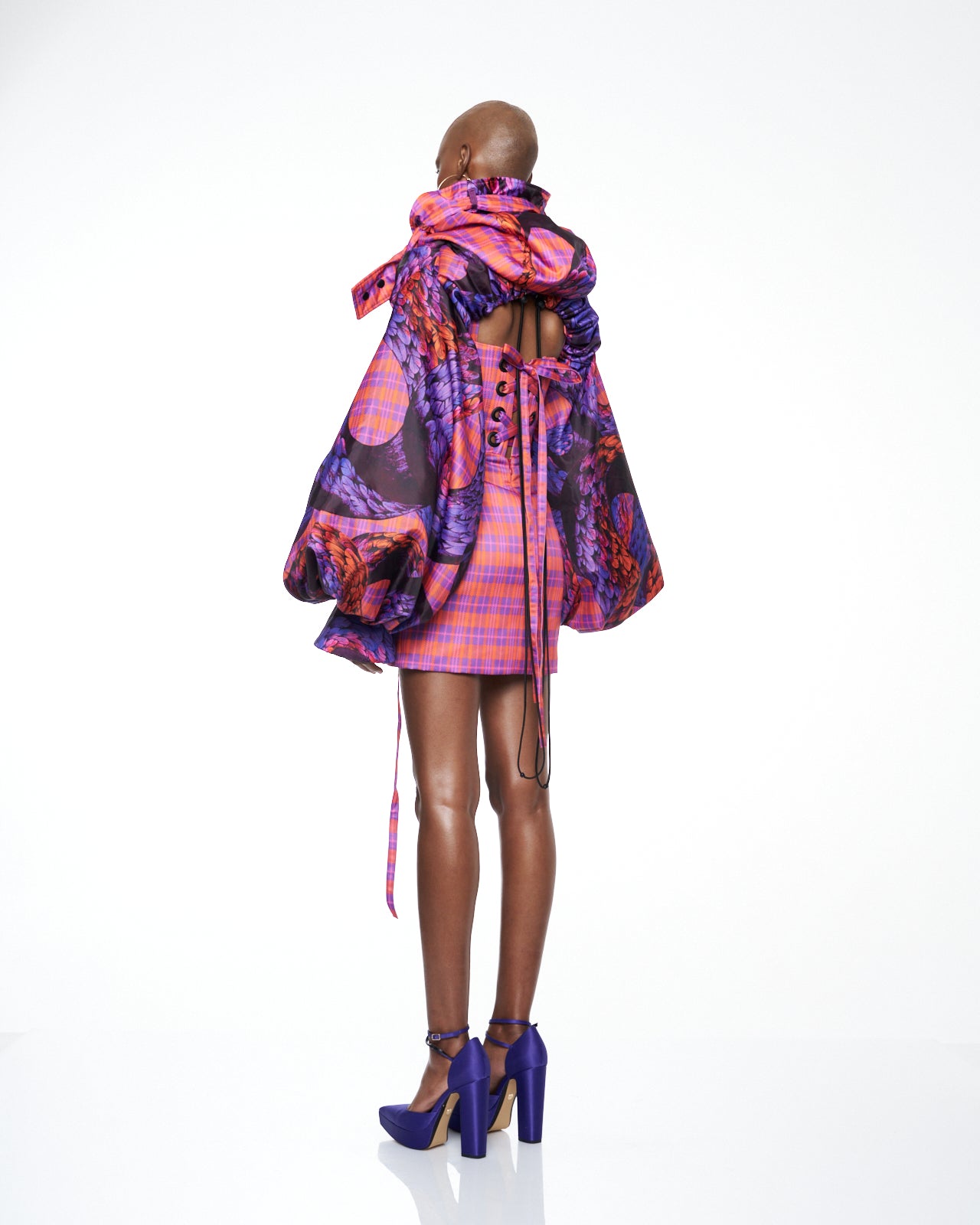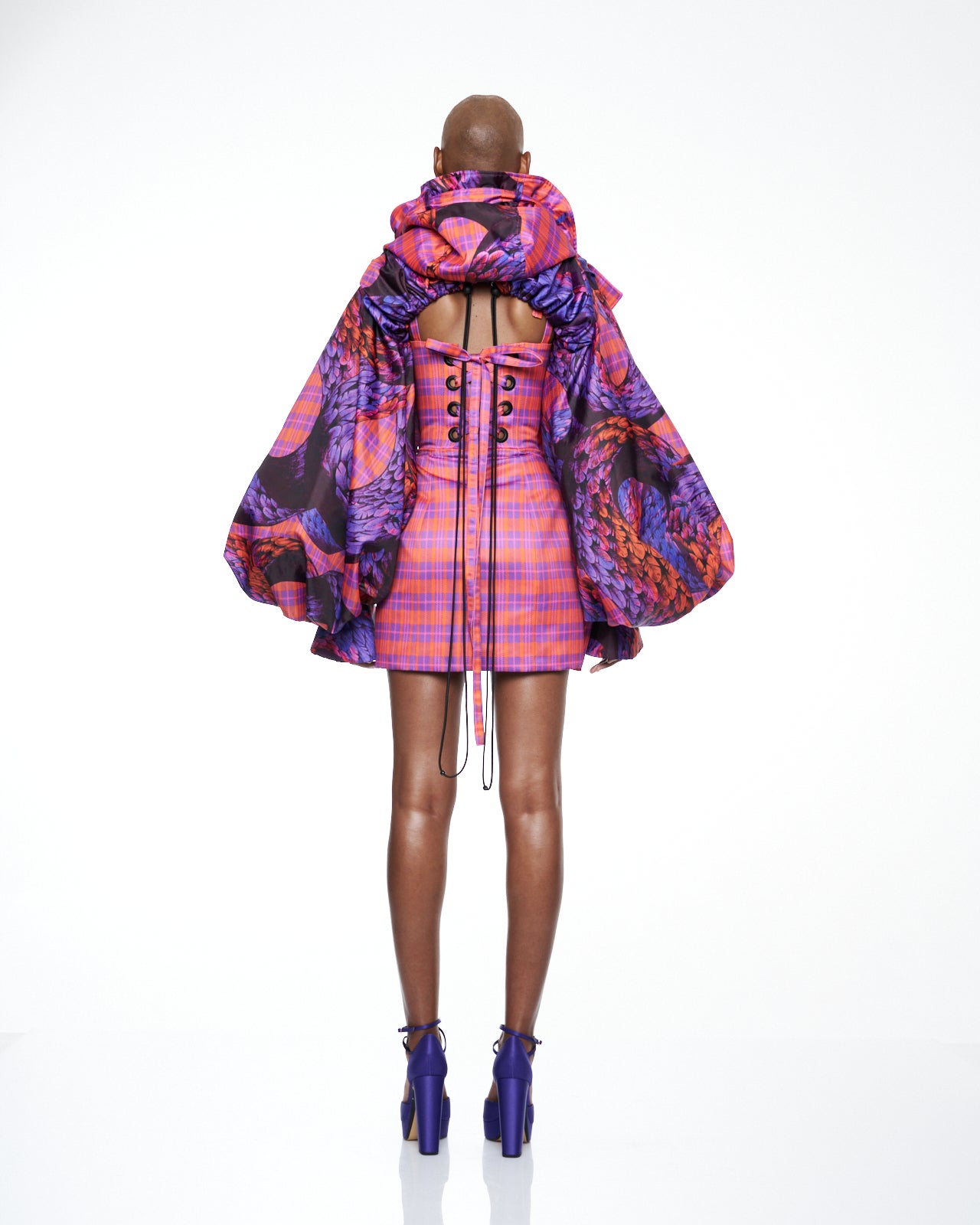 **/Description/*} The RICH MNISI Feathered Snake Jacket is crafted from oxford nylon that is patterned with the feathered snake print illustrated by Alix Stemmelin x RICH MNISI and features sculptural bishop sleeves and a hood.