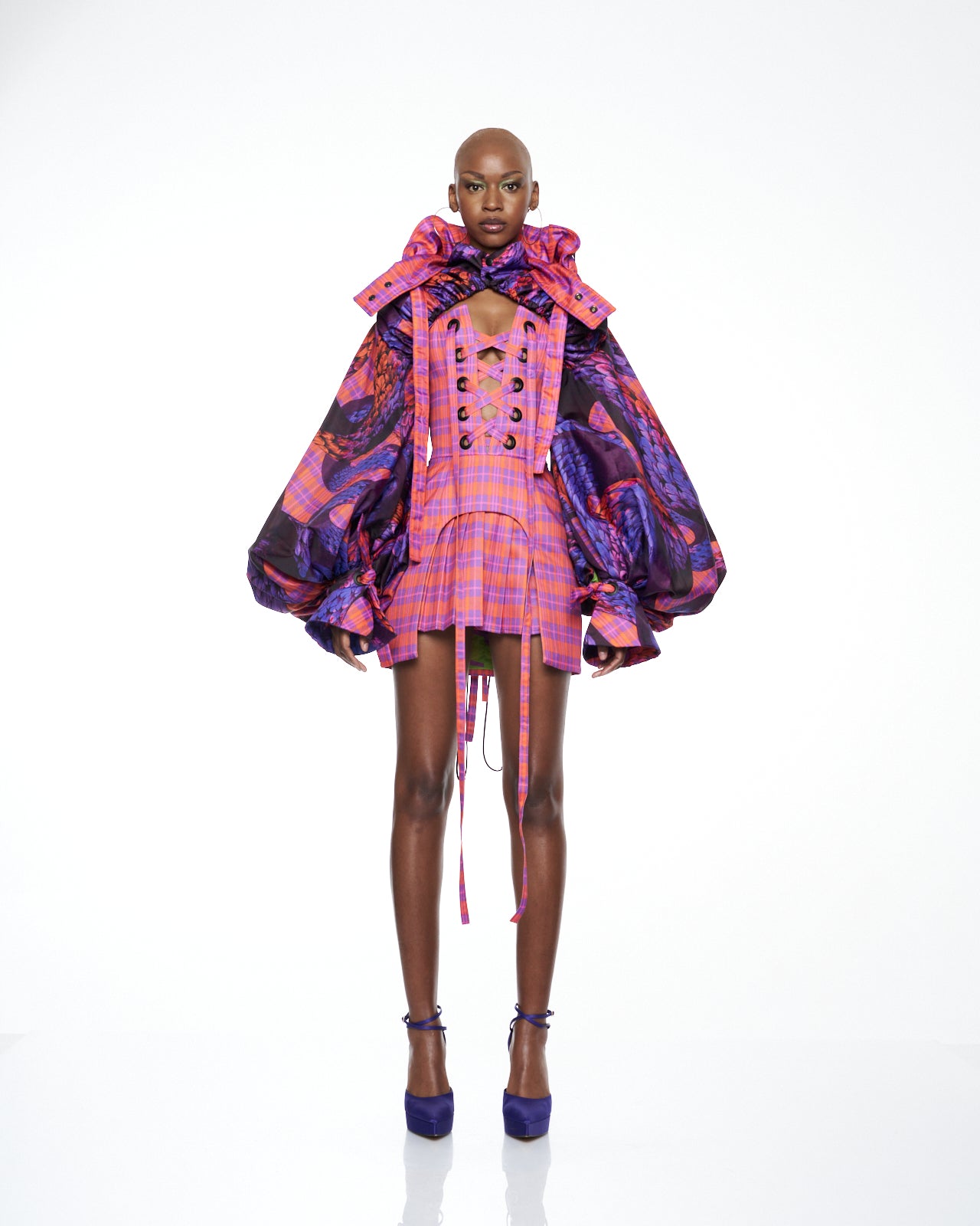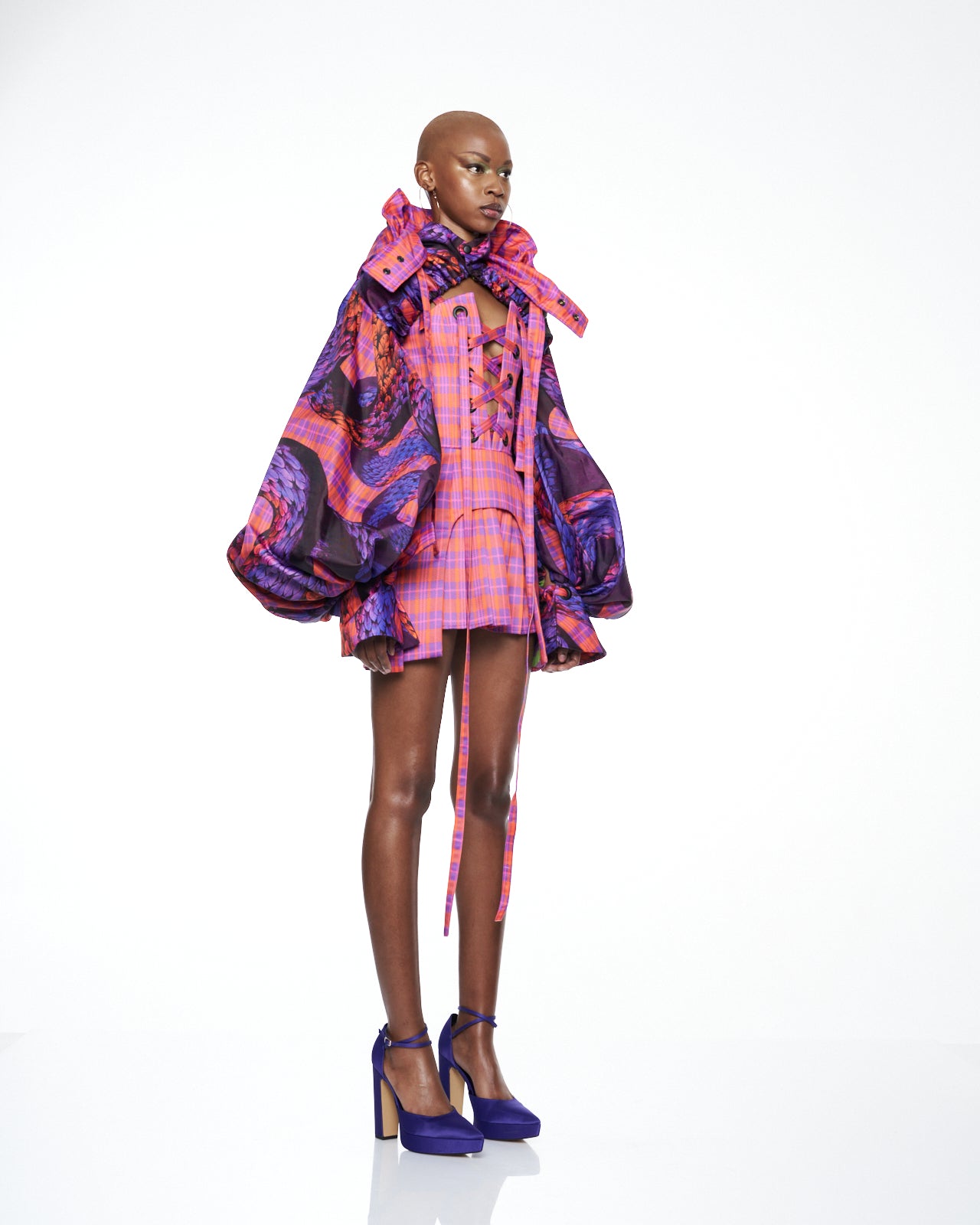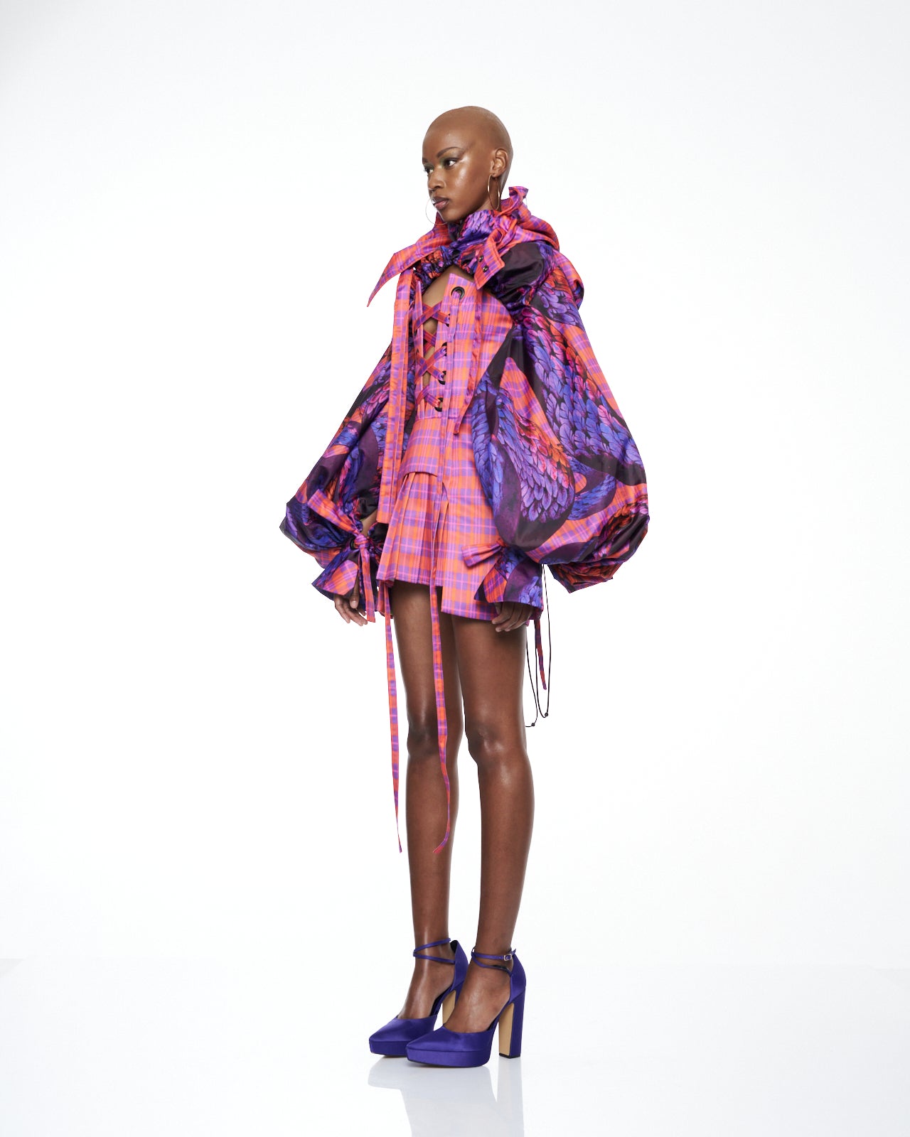 **/Description/*} The RICH MNISI Feathered Snake Jacket is crafted from oxford nylon that is patterned with the feathered snake print illustrated by Alix Stemmelin x RICH MNISI and features sculptural bishop sleeves and a hood.