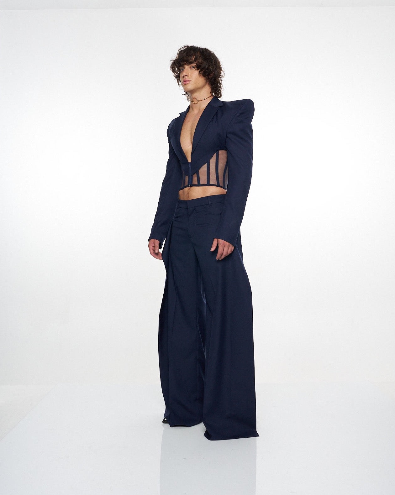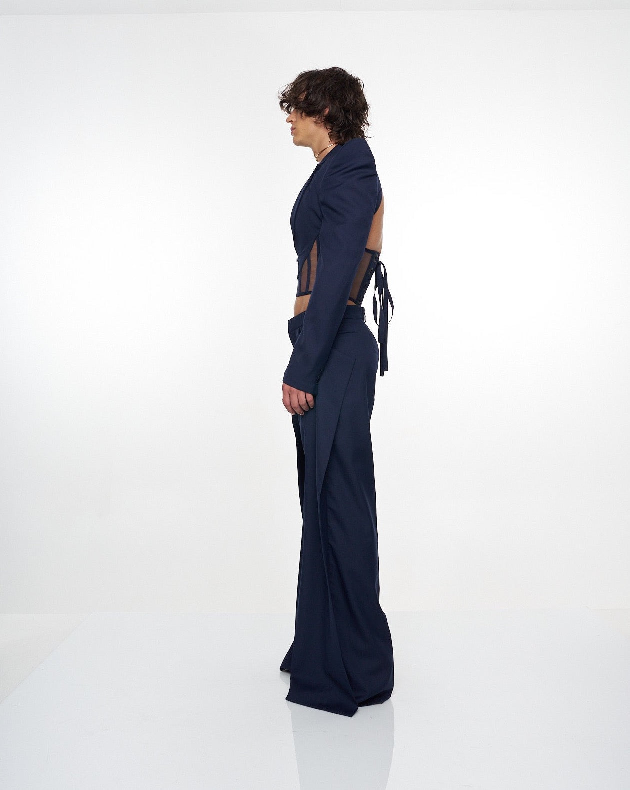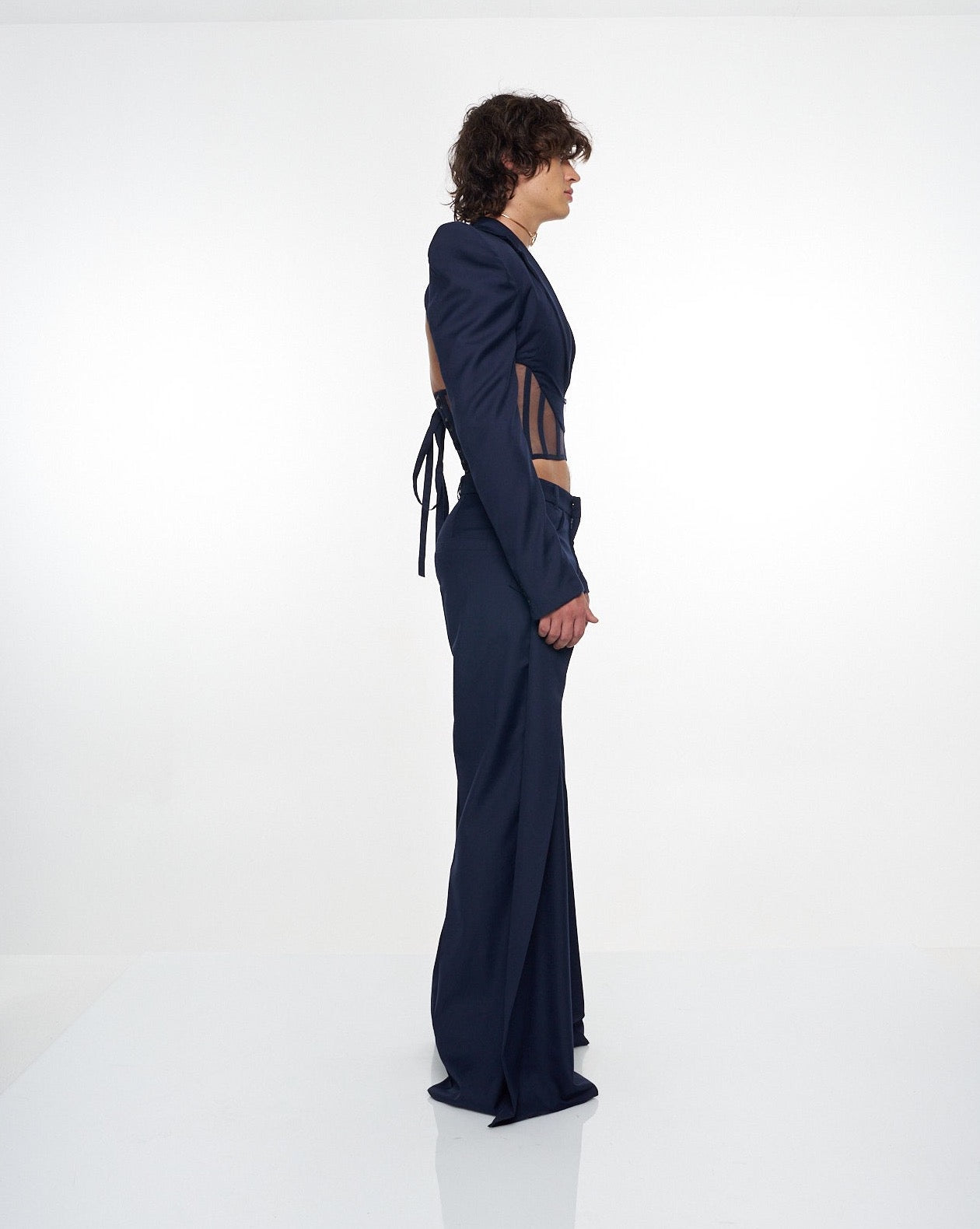 **/Description/*} The RICH MNISI Navy Wing Trousers are tailored in a wool suiting in low waist design that comes with side wingspans.