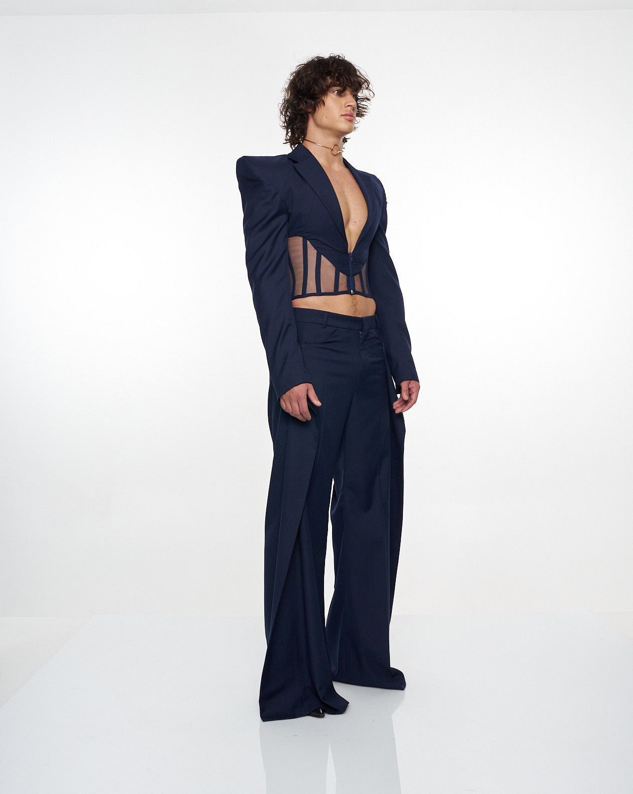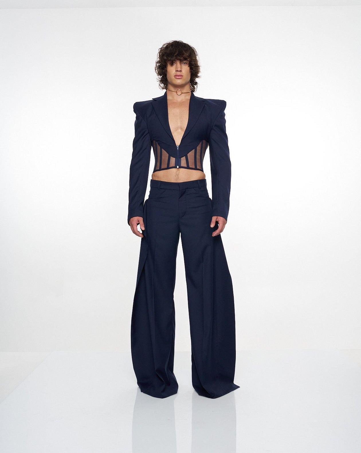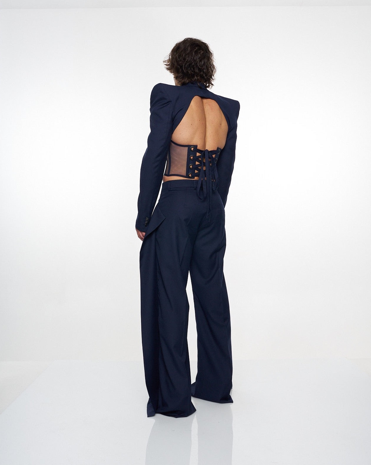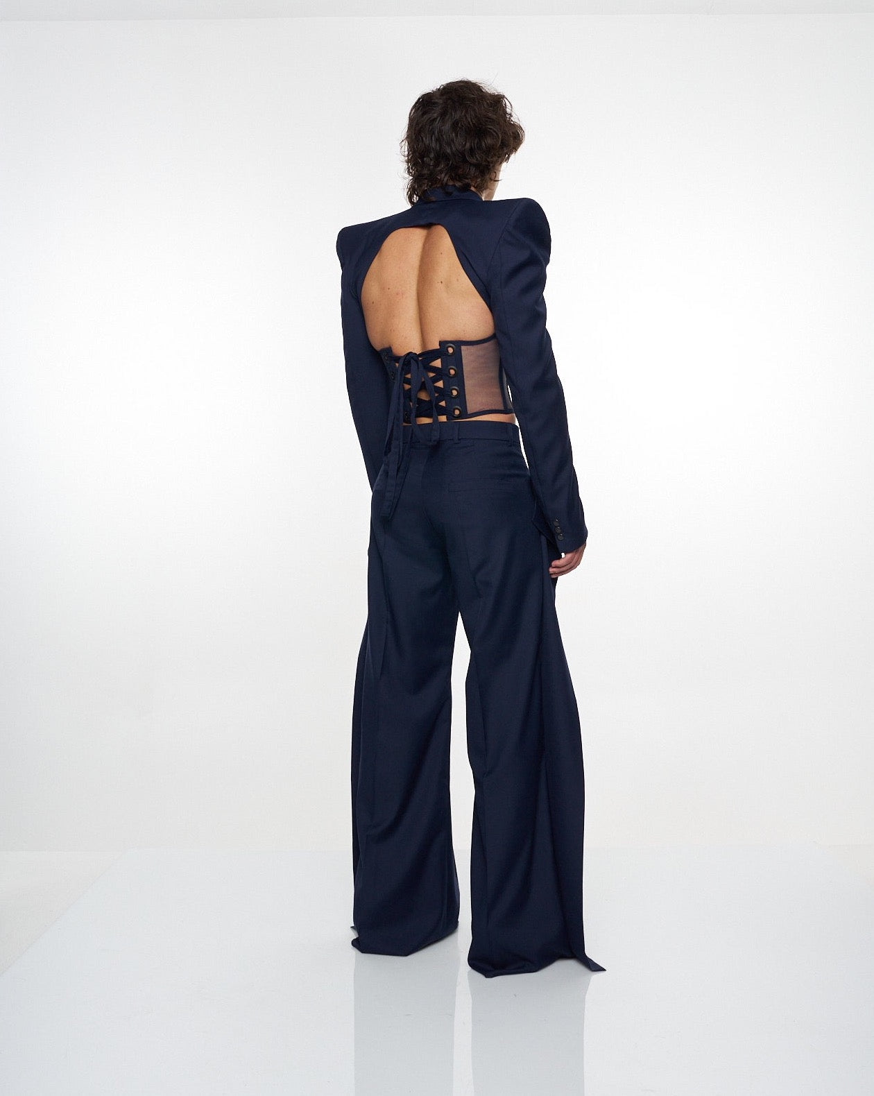 **/Description/*} The RICH MNISI Navy Wing Trousers are tailored in a wool suiting in low waist design that comes with side wingspans.