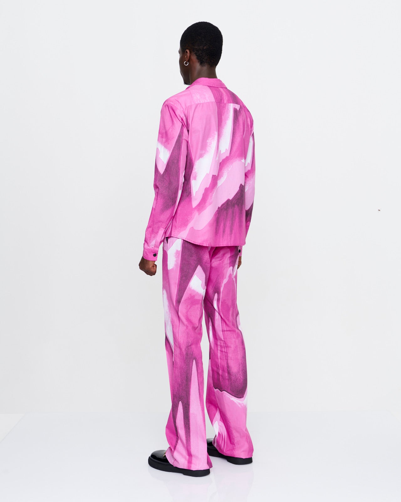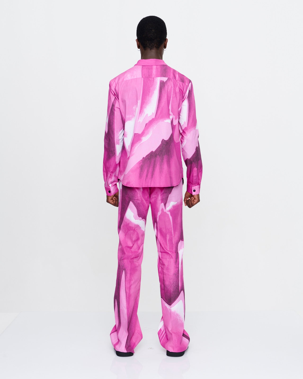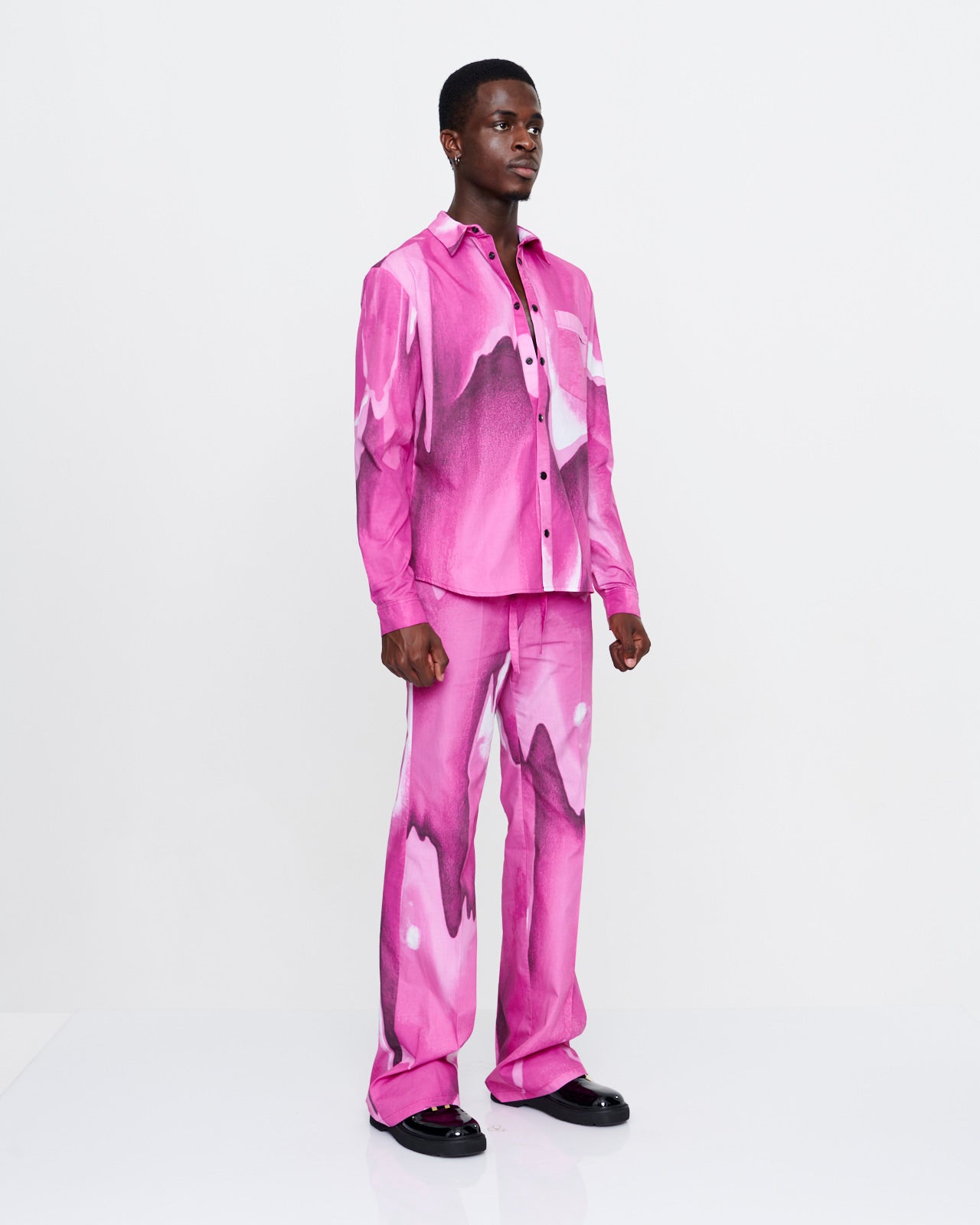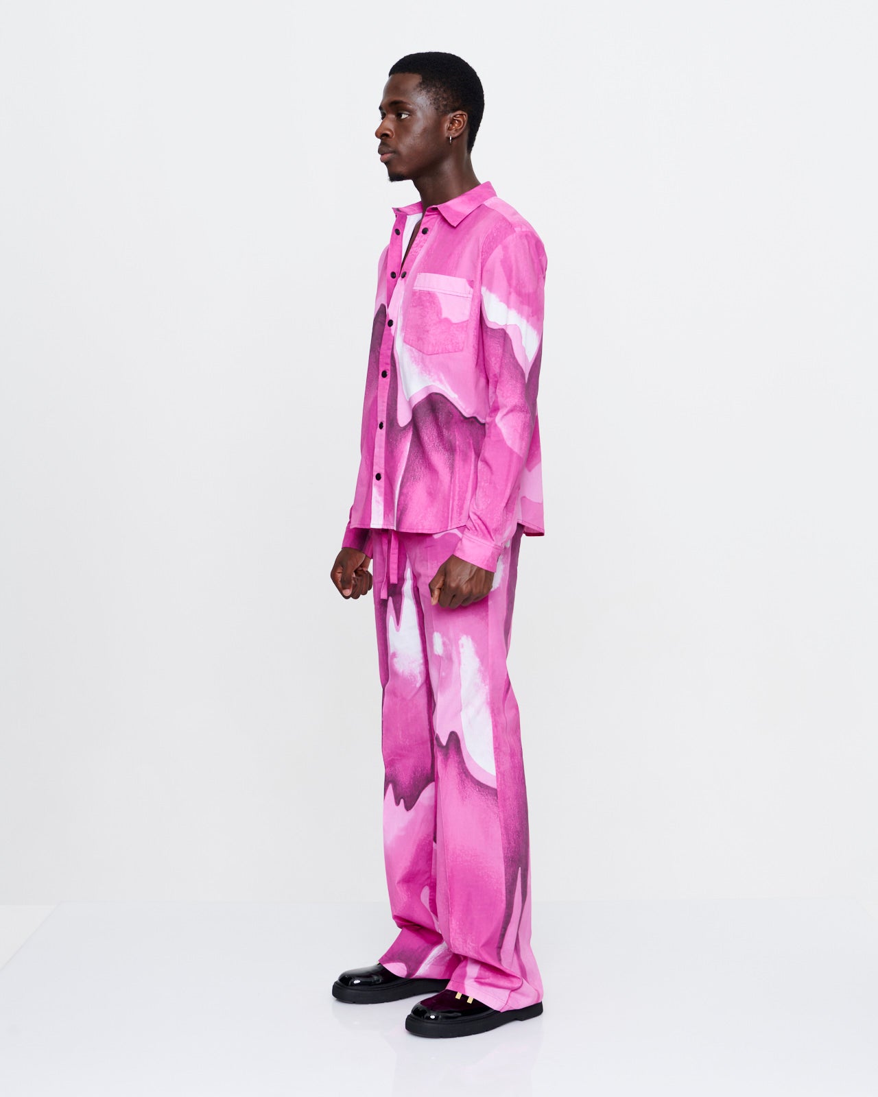 **/Description/*} The RICH MNISI Pink Mountain Tears Shirt is crafted from a locally milled cotton poplin. The button-up shirt is cut for a relaxed fit, while sporting a collar and a chest patch pocket.