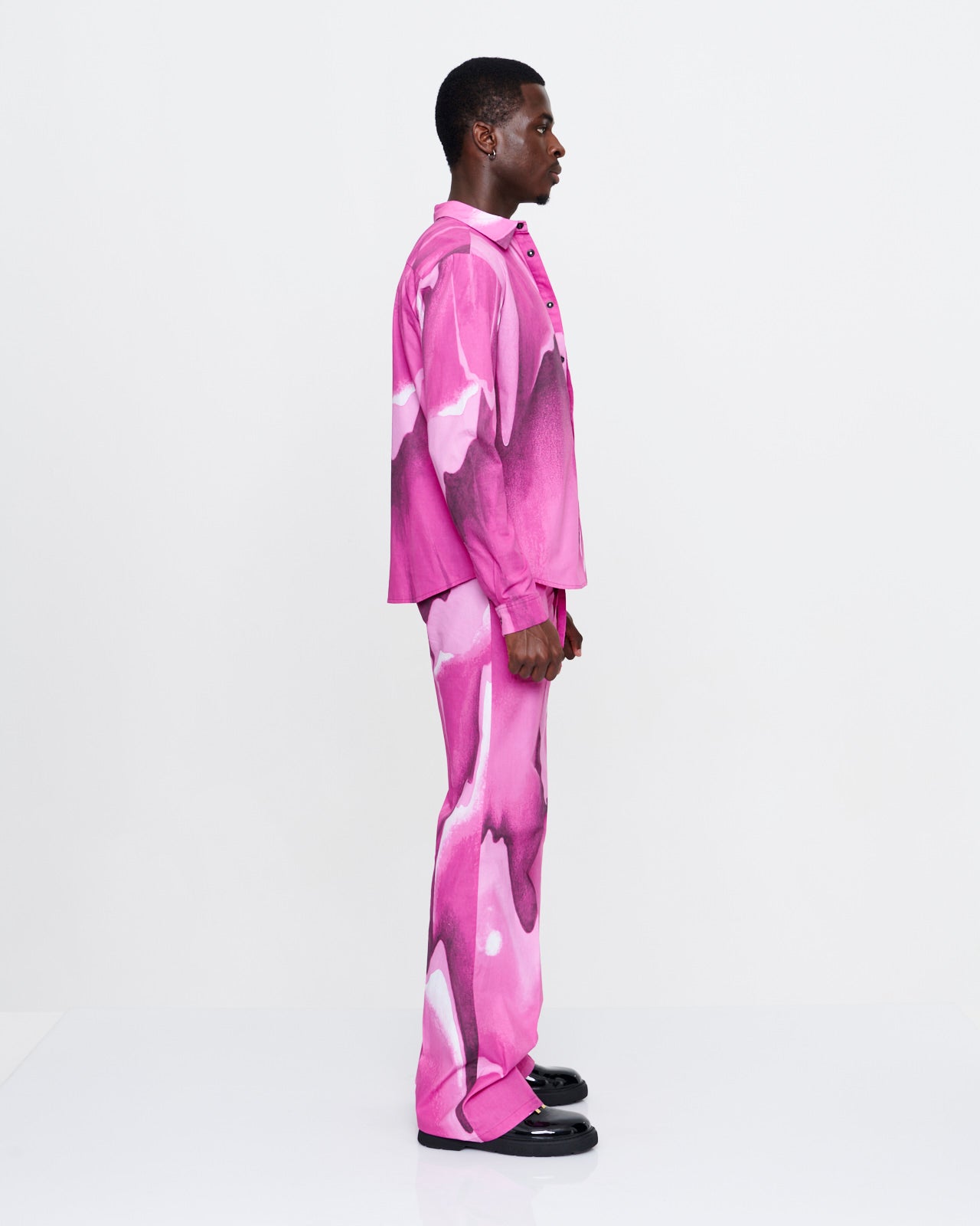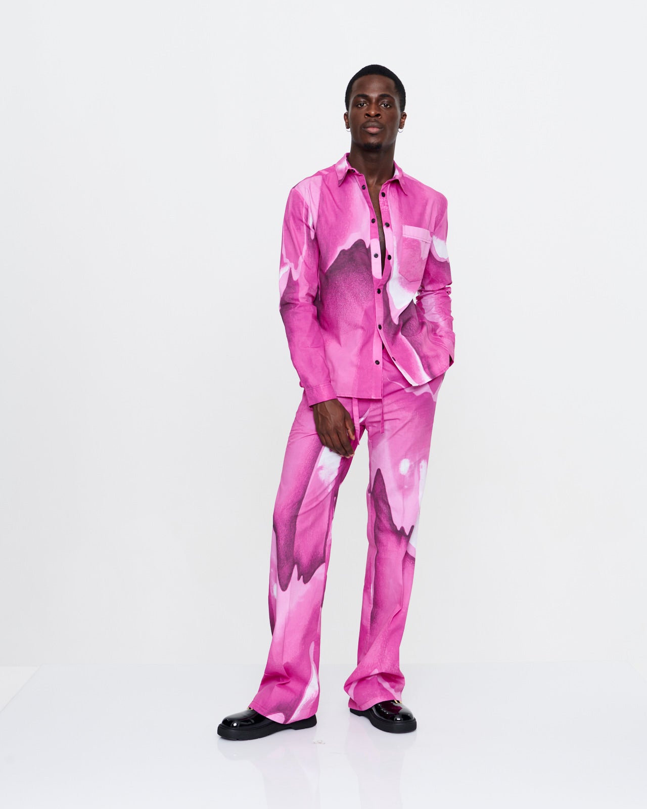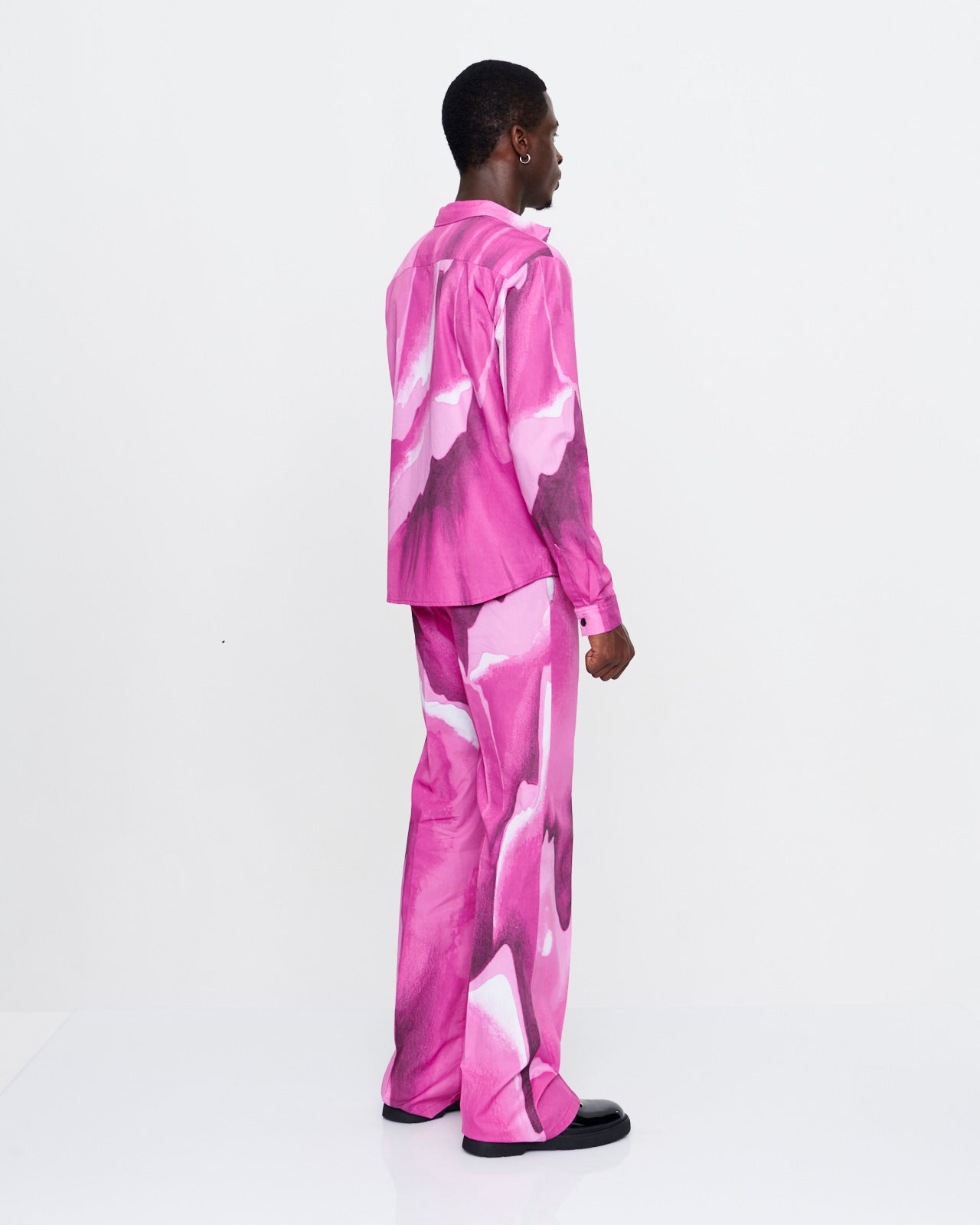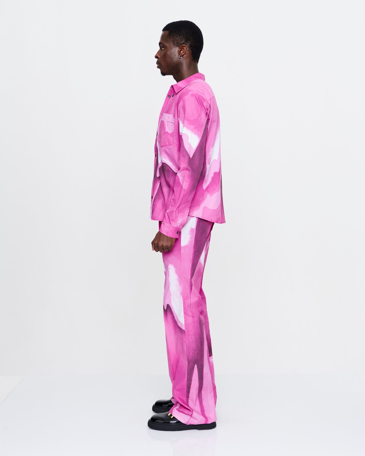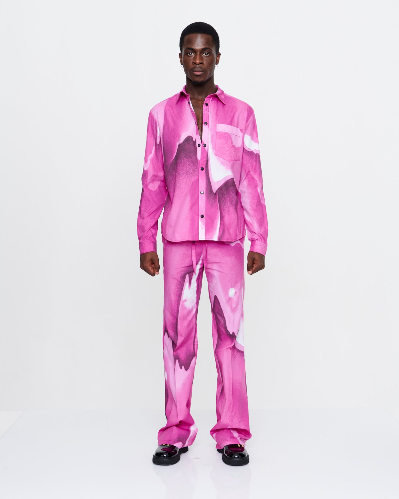 **/Description/*} The RICH MNISI Pink Mountain Tears Shirt is crafted from a locally milled cotton poplin. The button-up shirt is cut for a relaxed fit, while sporting a collar and a chest patch pocket.