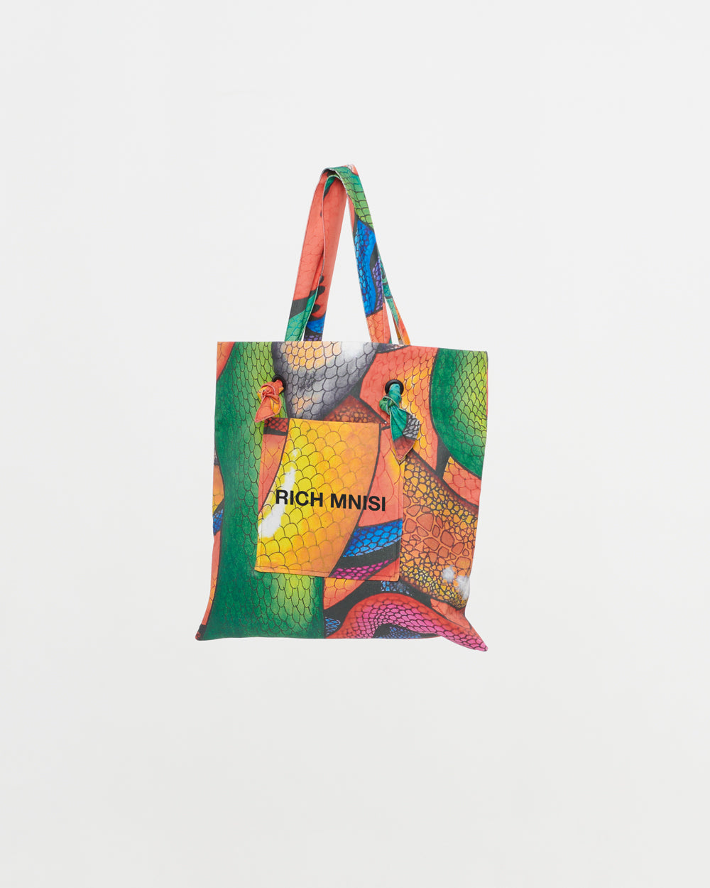 The RICH MNISI Pride Tote Bag in a print illustrated by Alix Stemmelin x Rich Mnisi is crafted in a lightweight cotton twill with outer and inner pockets finished with adjustable knotted straps.