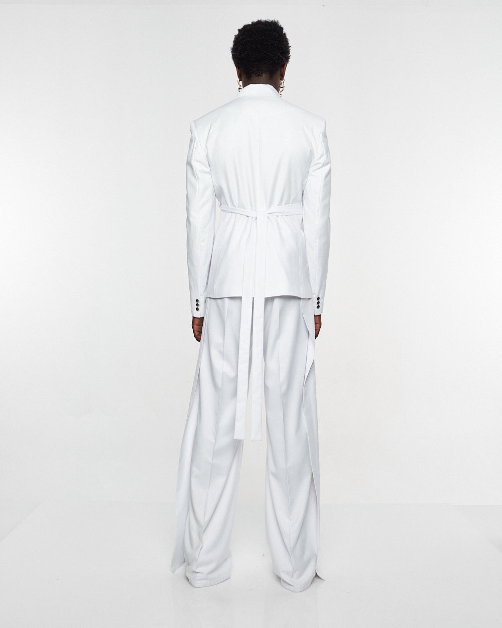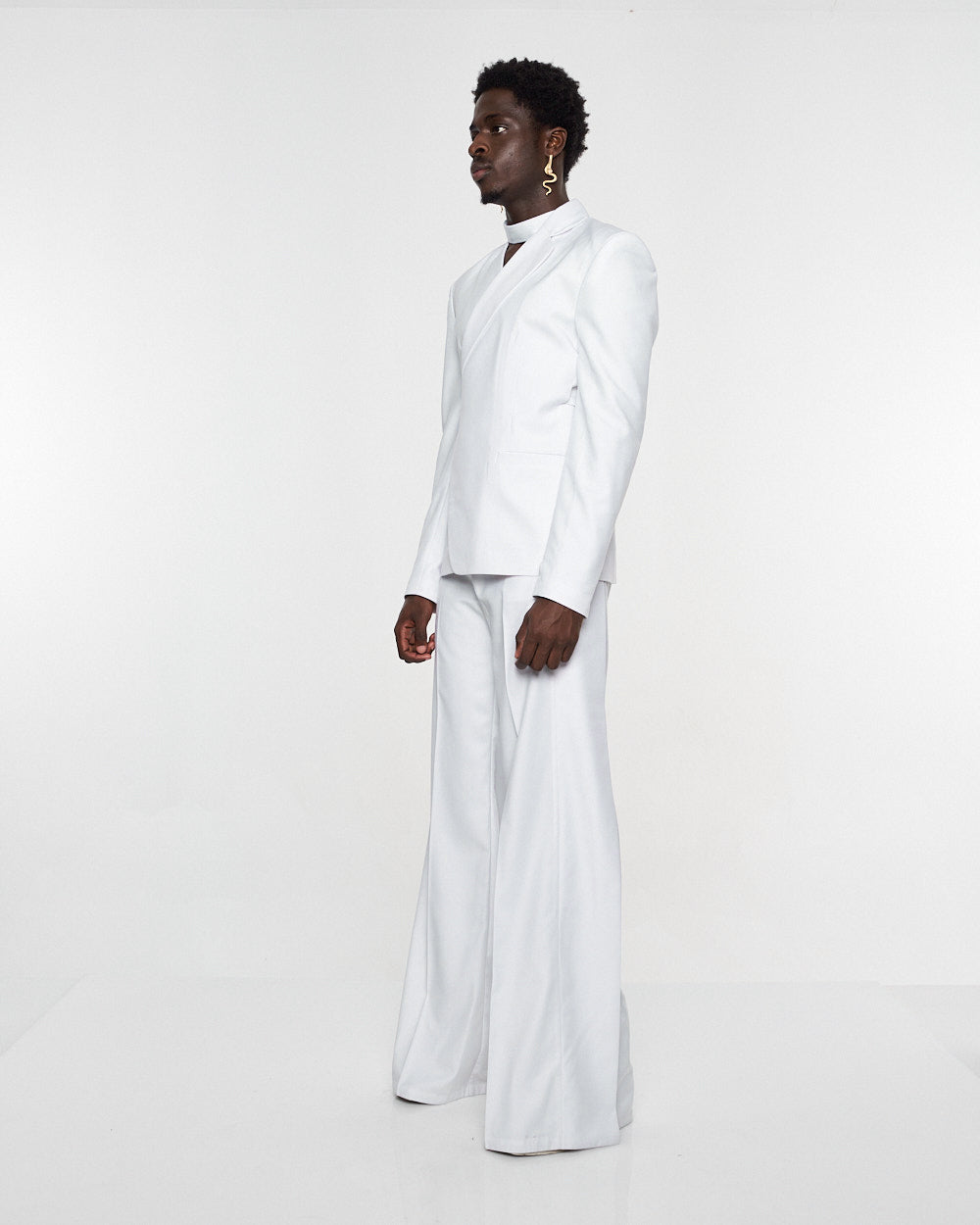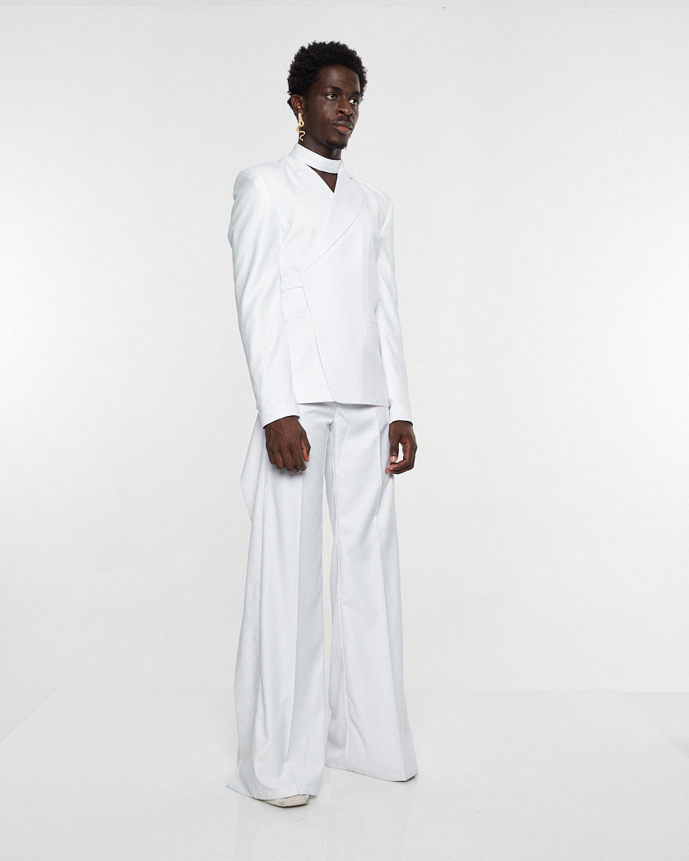 **/Description/*} The RICH MNISI Purity Blazer is constructed in a wool suiting with a relaxed long lined silhouette, with a one sided lapel that goes into a foulard. It features padded shoulders, welt pockets and buttoned cuffs.