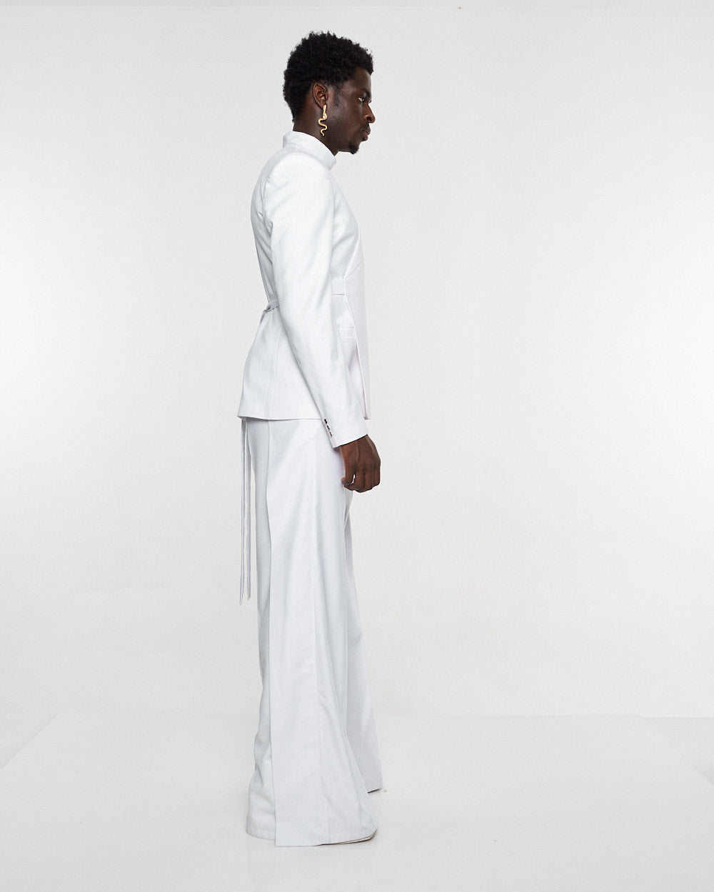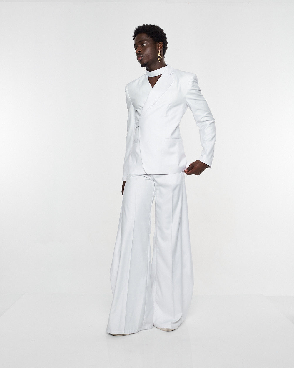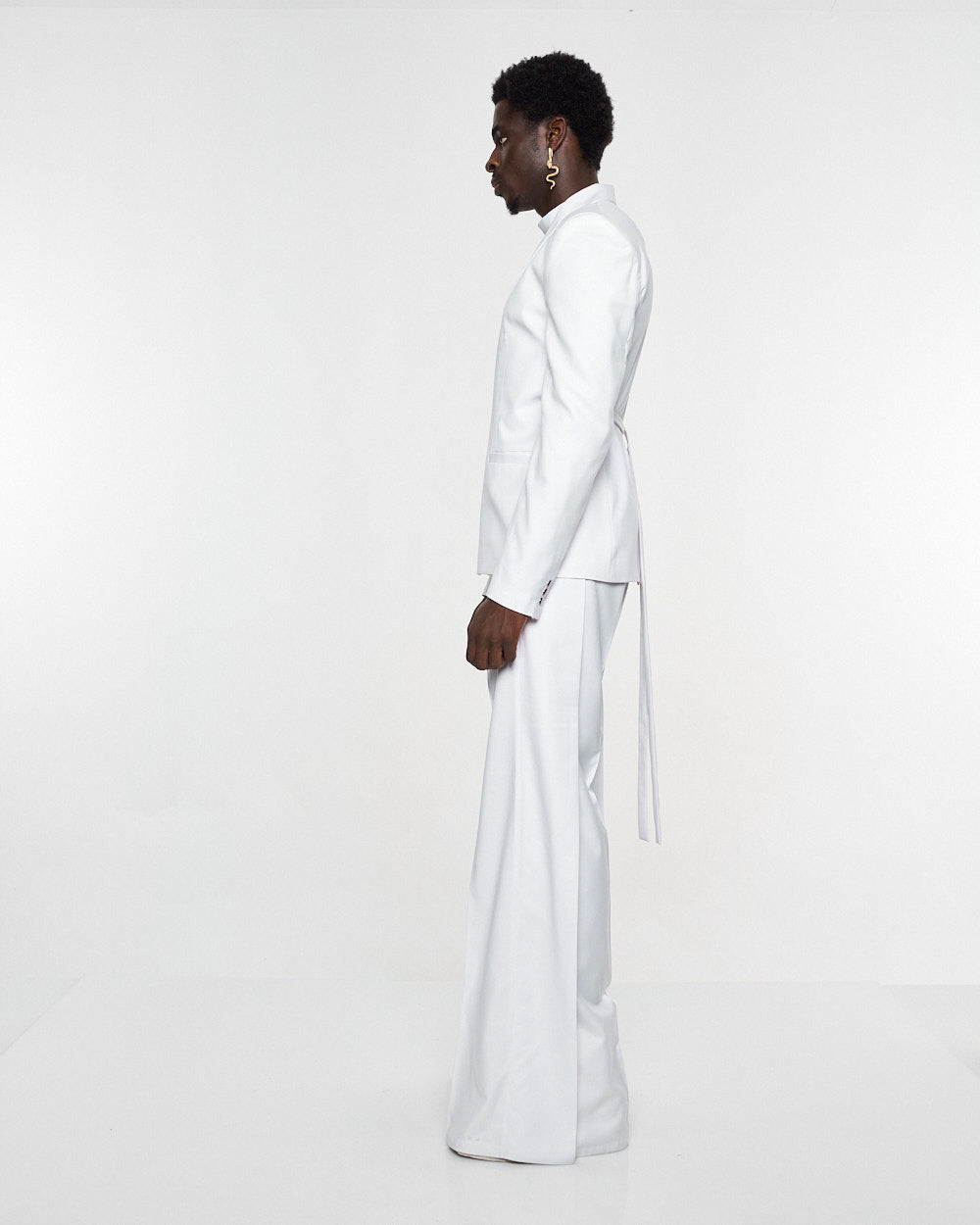 **/Description/*} The RICH MNISI Purity Blazer is constructed in a wool suiting with a relaxed long lined silhouette, with a one sided lapel that goes into a foulard. It features padded shoulders, welt pockets and buttoned cuffs.