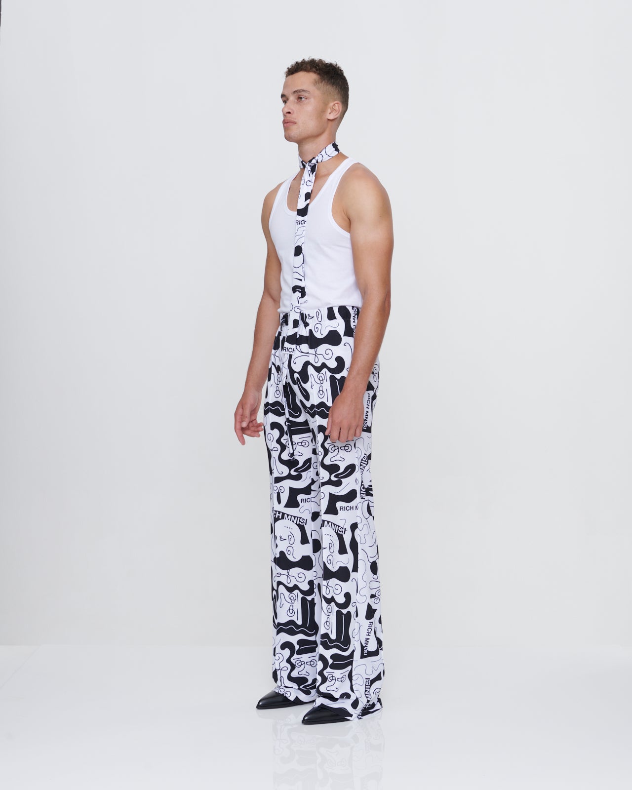 **/Description/*} The RICH MNISI Rumours Flared Joggers are crafted from a fluid crepe that is patterned with our Rumours print, adorned with a repeat of the 'RICH MNISI' logo.
