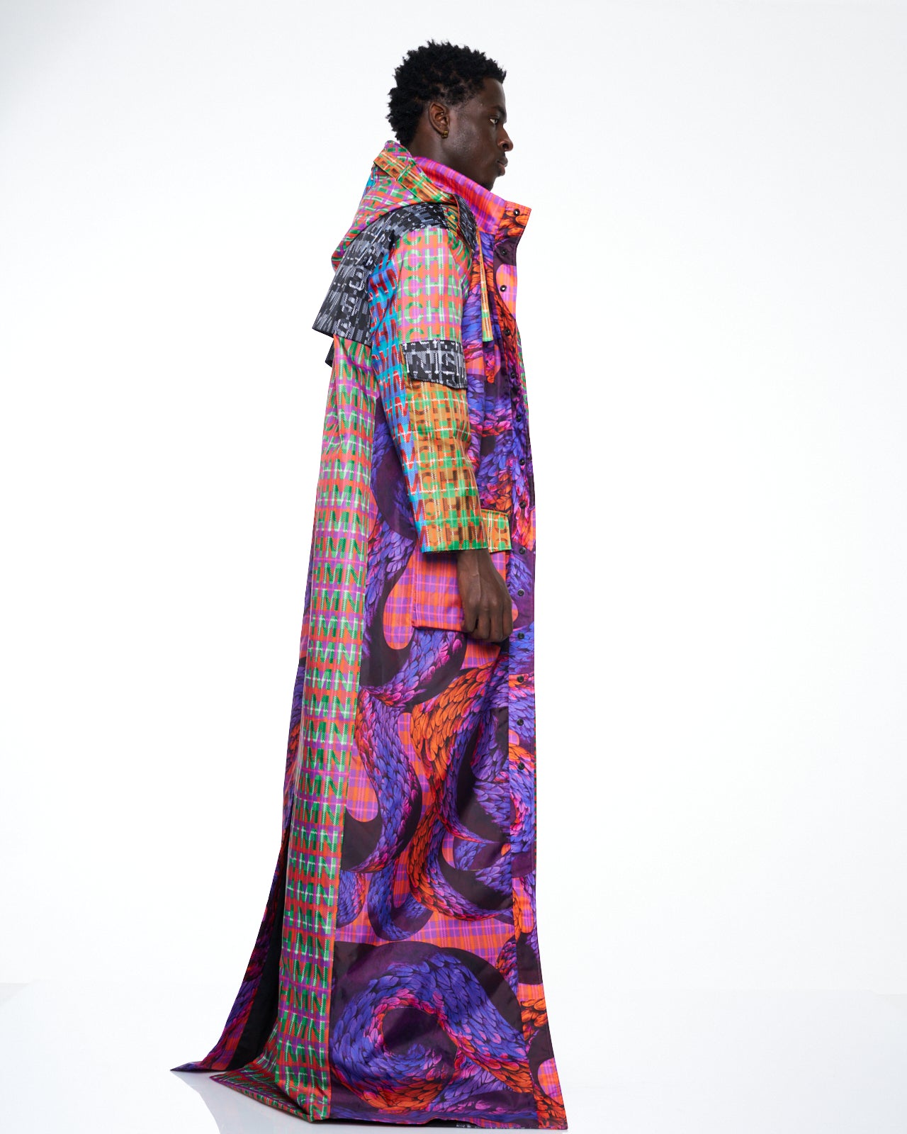 **/Description/*} The RICH MNISI Tartan Tartan Tartan Coat is crafted from a nylon that is patterned in an amalgamation of the tartan tartan tartan prints, as well as the feathered snake print designed in collaboration with Alix Stemmelin.