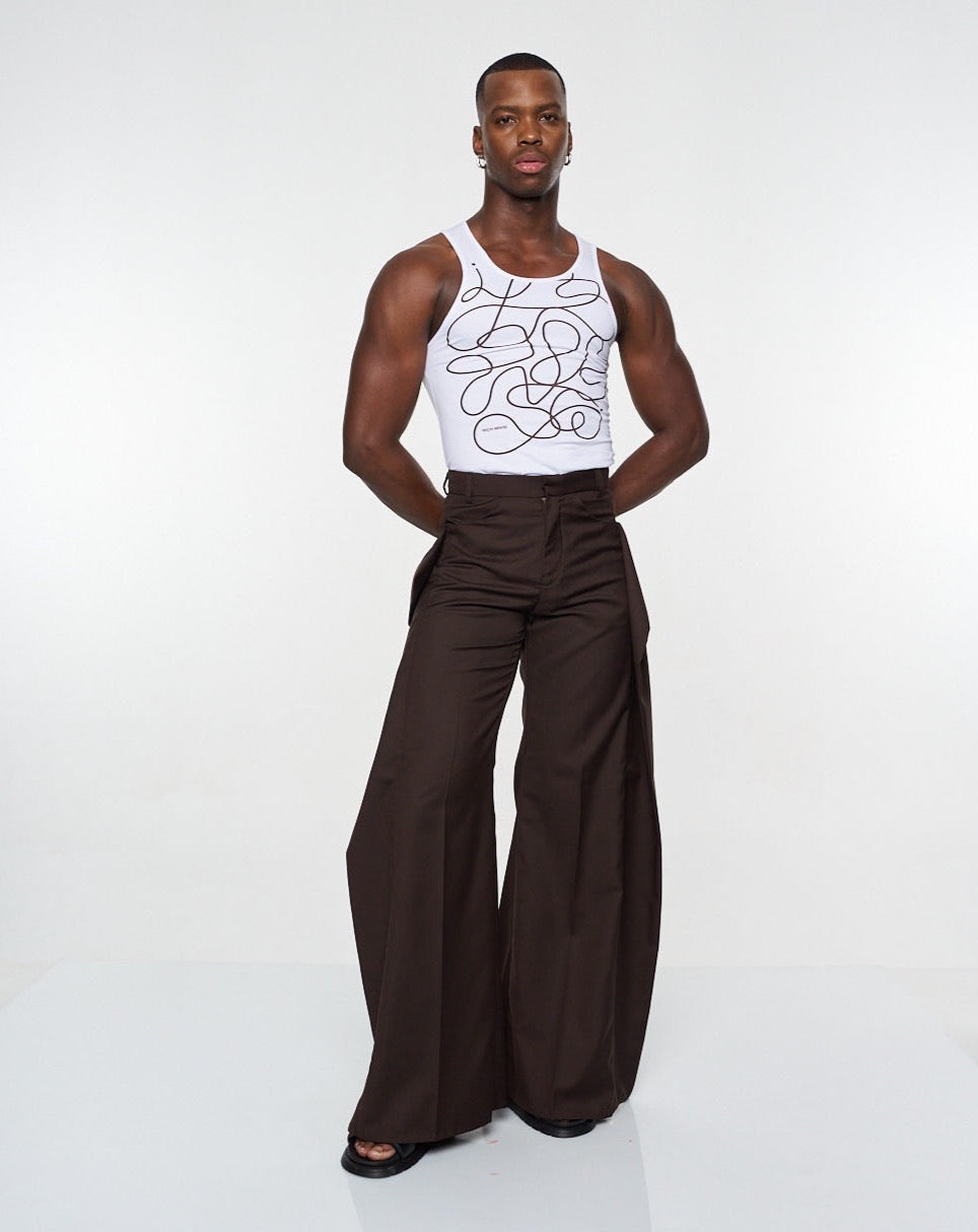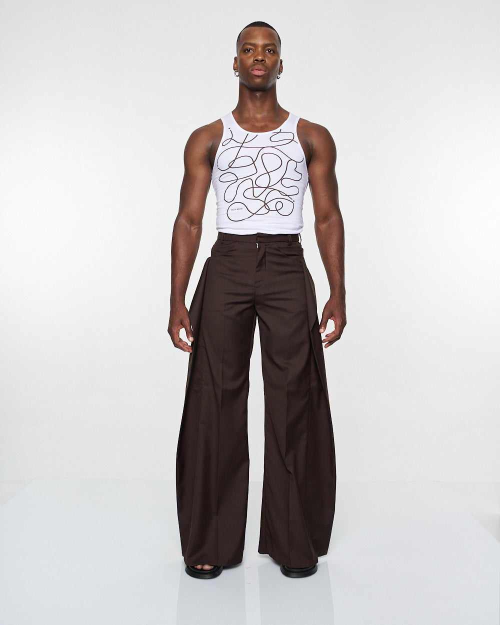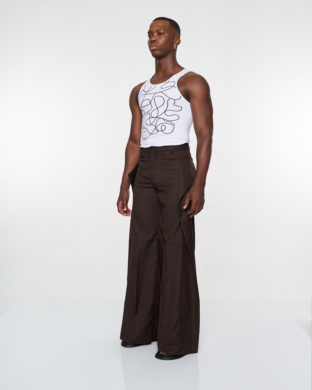 **/Description/*} The RICH MNISI Chestnut Wing Trousers are tailored in a wool suiting in low waist design that comes with side wingspans.